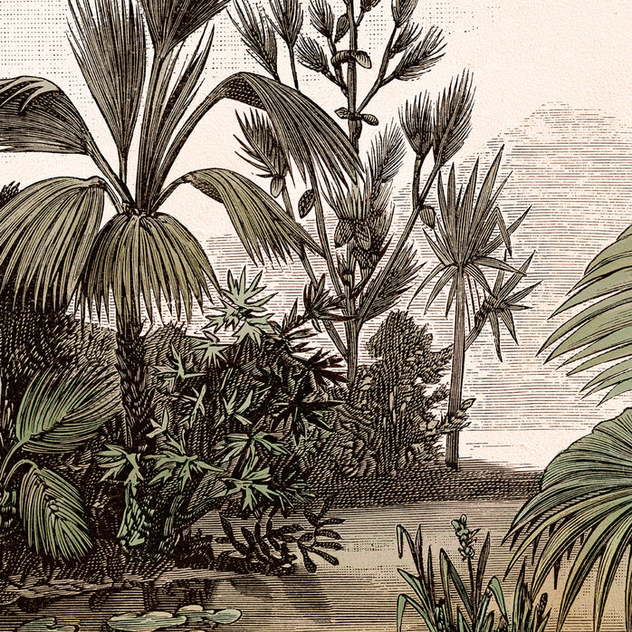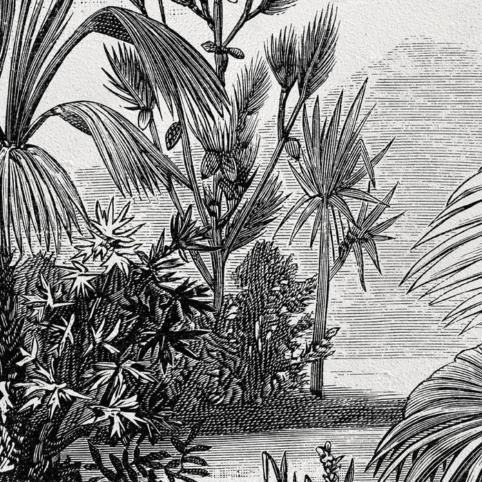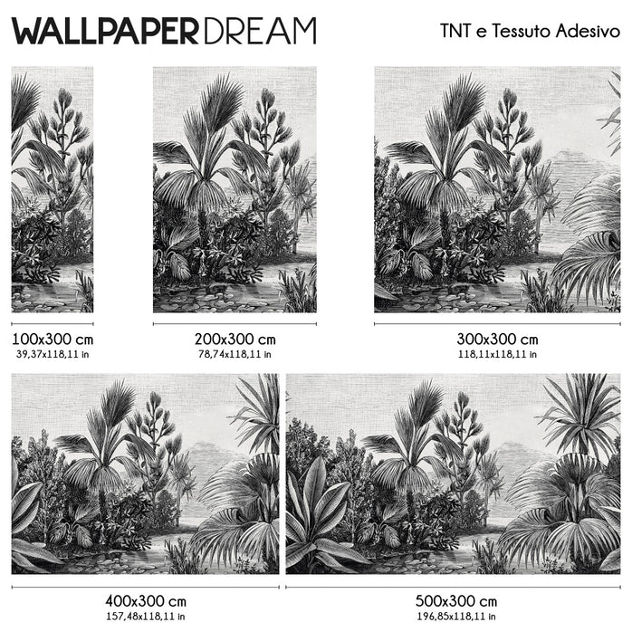 Unsere „ Schwarz-Weiß-Dschungel “ fototapete transportiert den Charme und die Majestät des afrikanischen Dschungels direkt an Ihre Wände, mit einem Ätzstil , der Ihren Räumen einen künstlerischen und Vintage- Touch verleiht.