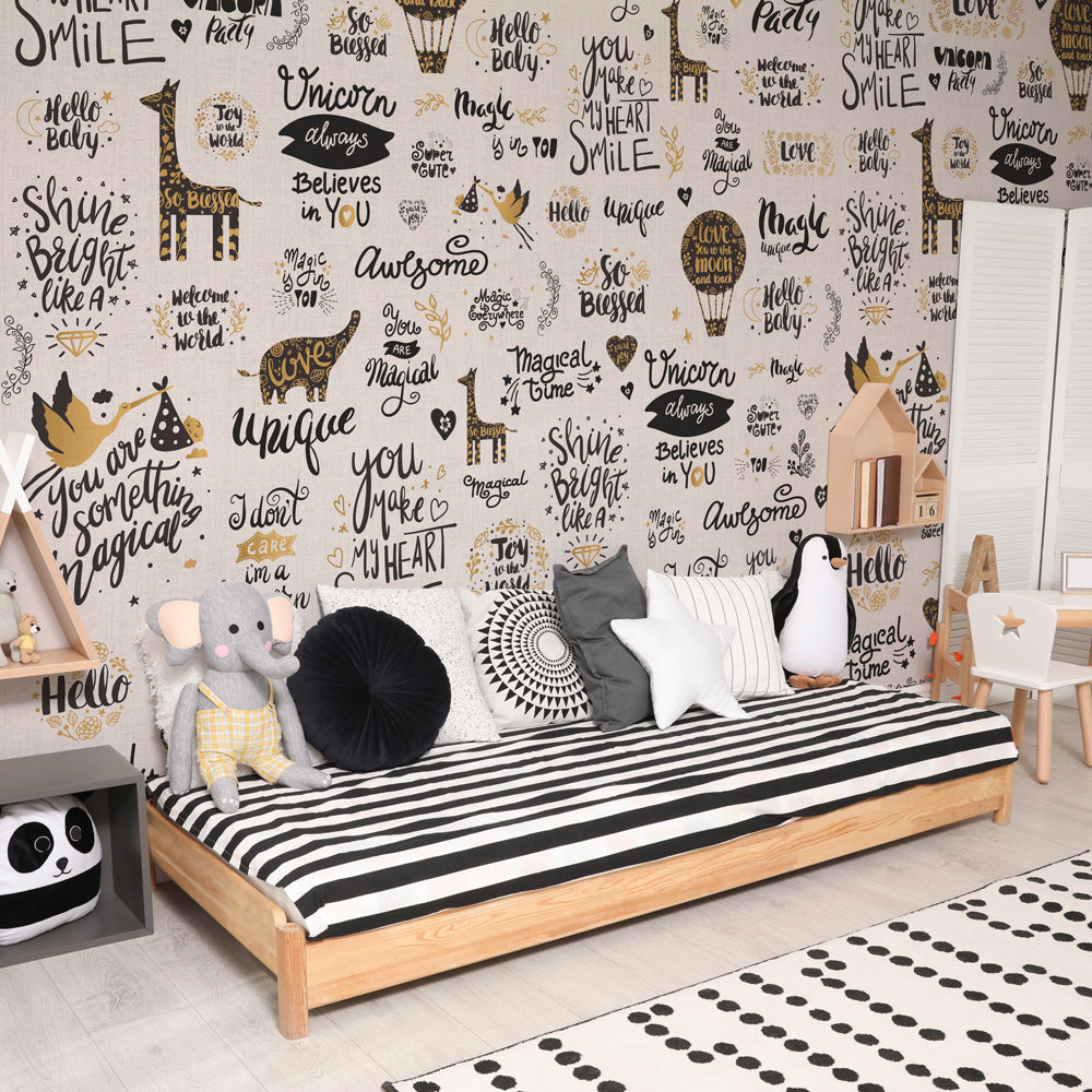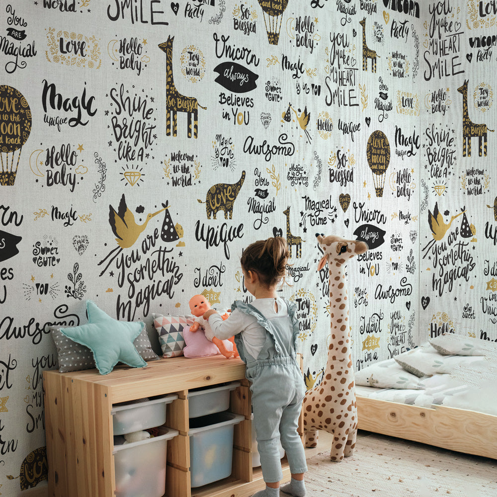 Trasforma la cameretta in un luogo magico dove la creatività non ha limiti con la carta da parati "Aforismi bambini".