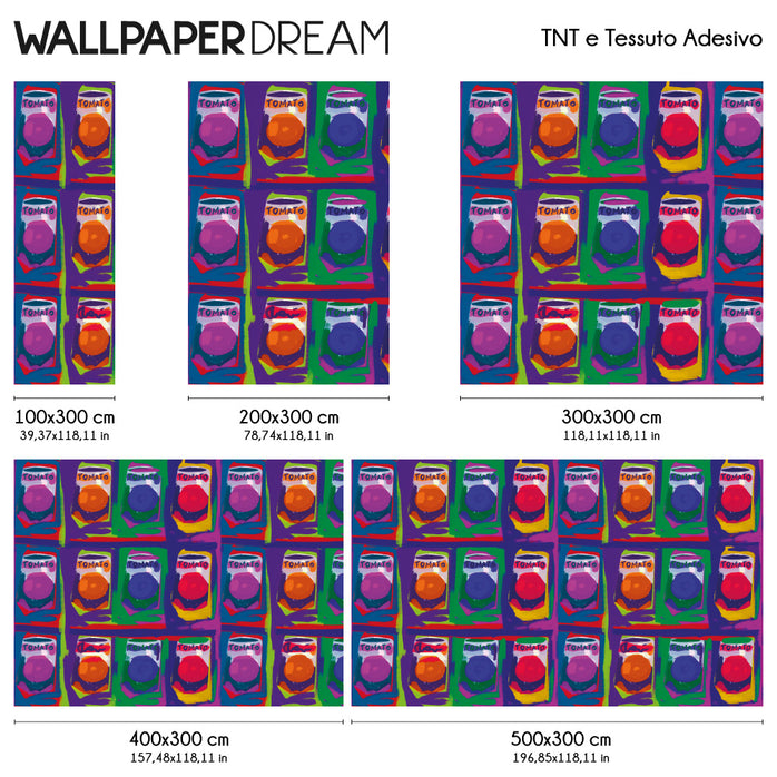 Verkleiden Sie die Wände mit der Fototapete "Tomaten Pop". Das originelle und super stilisierte Design der Tomatensuppe in der Dose kombiniert sich mit lebendigen und originellen Farben, um einen einzigartigen und mitreißenden Effekt zu schaffen. Die schnellen und materiellen Pinselstriche tragen dazu bei, der Illustration eine künstlerische Note zu verleihen und bereichern die Fototapete mit einer pastellartigen Textur. Gesättigte Töne von Grün, Cyan, Magenta, Gelb und leuchtendem Säuregrün machen diese Fototapete ideal für moderne Räume mit einem entschiedenen und unkonventionellen Charakter.