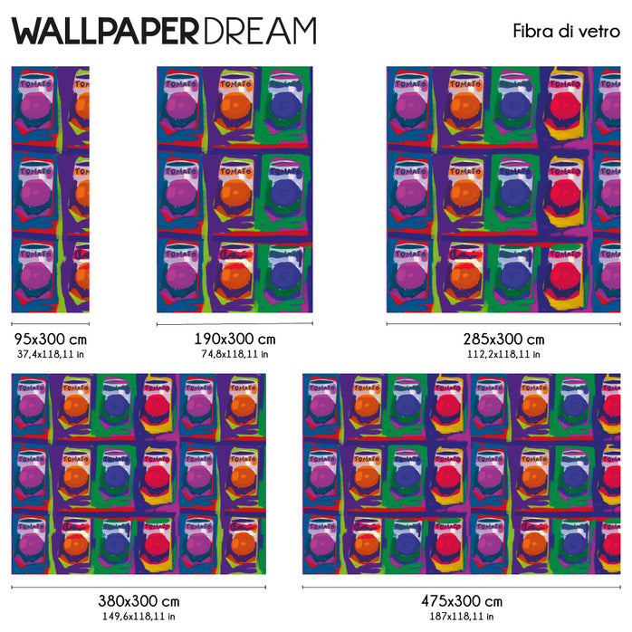 Wählen Sie Glasfaser, ideal für Badezimmer und sogar Duschkabinen, oder die TNT-Version, um alle anderen Räume im Haus zu verkleiden. "Tomaten Pop" ist die perfekte Wahl, um Ihre Wände in ein einzigartiges und personalisiertes Kunstwerk zu verwandeln. Seine Vielseitigkeit ermöglicht es Ihnen, einzigartige Räume zu schaffen, vom Badezimmer eines Luxushotels bis zu Ihrem persönlichen Wellnessbereich.