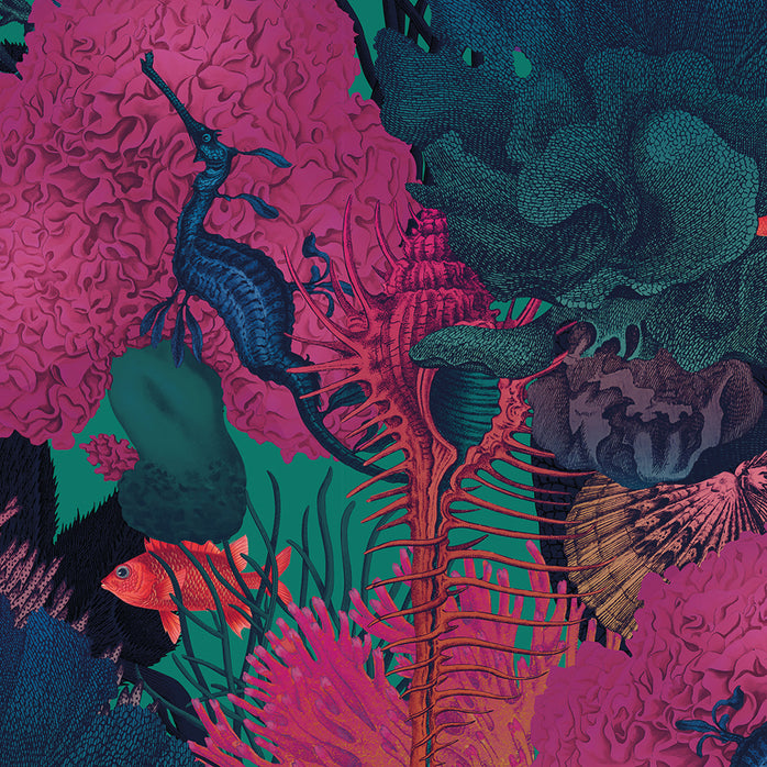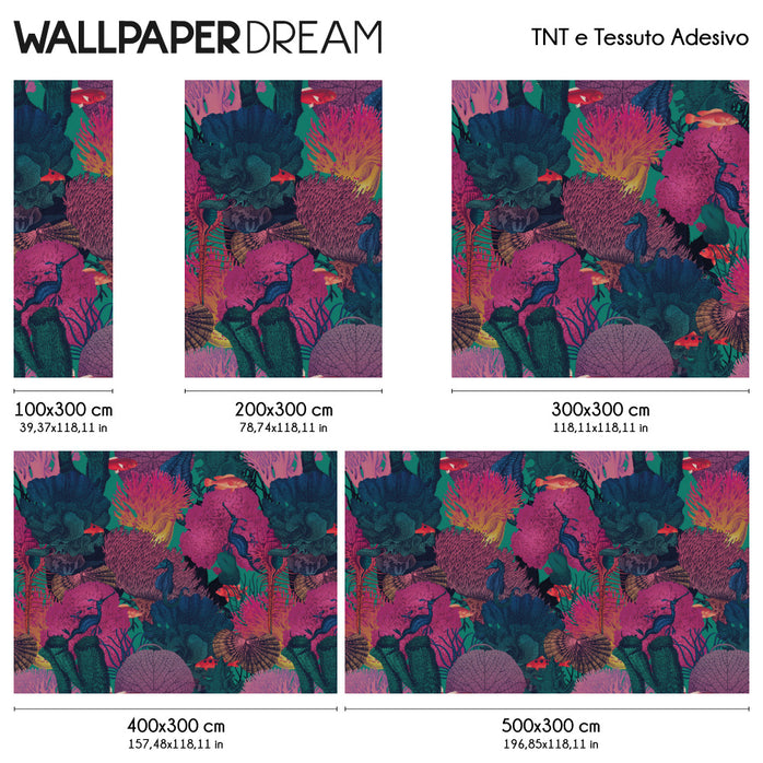 Verkleiden Sie die Wände mit der wunderbaren fototapete "Deep purple", in der farbenfrohe Fische aus dem Ozean zwischen Korallen und Schwämmen in den Tönen Rosa und Blau schwimmen. Die Meeresbewohner, im Stil einer Gravur ausgeführt, aber mit sehr modernen Farben dargestellt, passen gut in jede Umgebung oder jeden Raum des Hauses.
