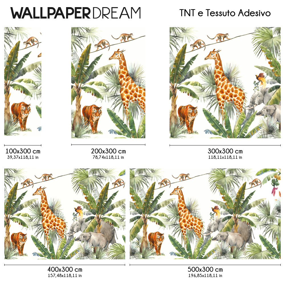 Es gibt nichts Entspannenderes als einen Spaziergang im Dschungel. Jetzt können Sie mit diesem Exemplar diese ruhige und natürliche Umgebung in Ihr Zuhause holen fototapete Safari. Genießen Sie ein Beobachtungserlebnis zwischen Dschungeltieren und Bananenstauden. Fühlen Sie sich exotisch mit diesen beeindruckenden Tieren.