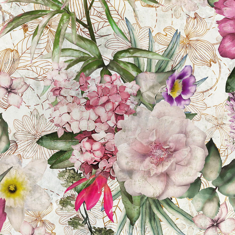 "Frühling„ist ein Fest der Farben und Blumen und bringt die erneuerte Energie der Saison in Ihr Zuhause. Es ist ein fototapete lebhaft und fröhlich, verfügt über eine Vielzahl schöner Blumen auf einem Hintergrund mit Wandeffekt mit stilisierten floralen Elementen. Ideal zum Dekorieren von Räumen wie Wohnzimmern, Schlafzimmern oder Arbeitszimmern, in denen Sie eine belebende Atmosphäre schaffen möchten, um das ganze Jahr über ein Frühlingsgefühl zu vermitteln.