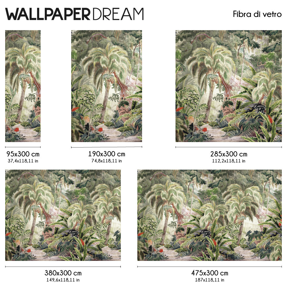 Tuffati in un'oasi di natura selvaggia con la nostra carta da parati "Bosco Tropicale". Questo design esclusivo ti trasporta in una lussureggiante foresta pluviale, catturando un'esplosione di piante esotiche, alberi maestosi e liane tipiche dei paesaggi più incontaminati.