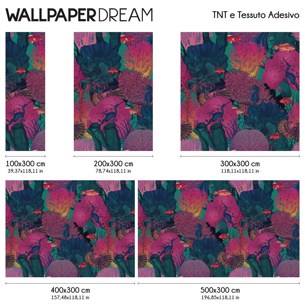 Dress the walls in colors with the wonderful Wall Mural "Deep purple" in which colorful ocean fish swim among corals and sponges in shades of pink and blue. The marine creatures, executed in engraving style but represented with very modern colors, will fit well in any environment or room of the house.