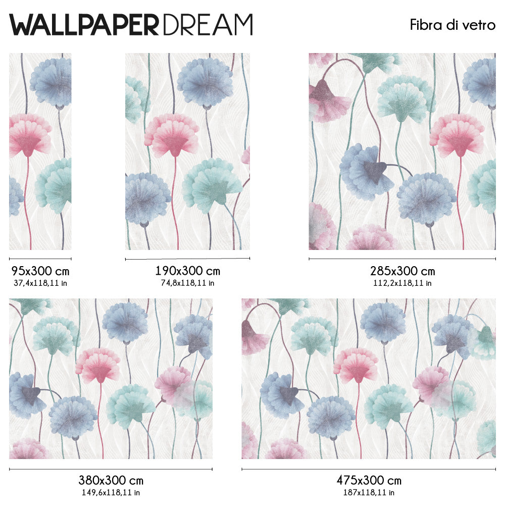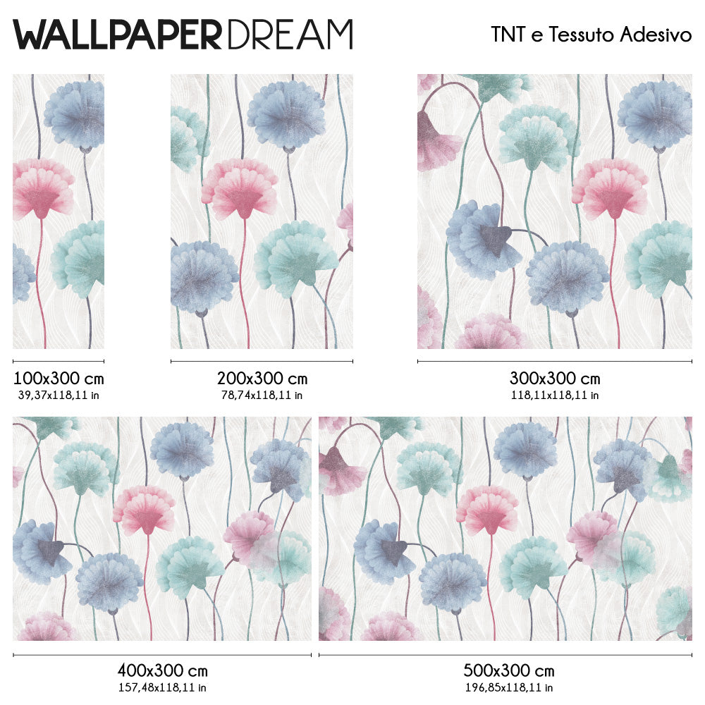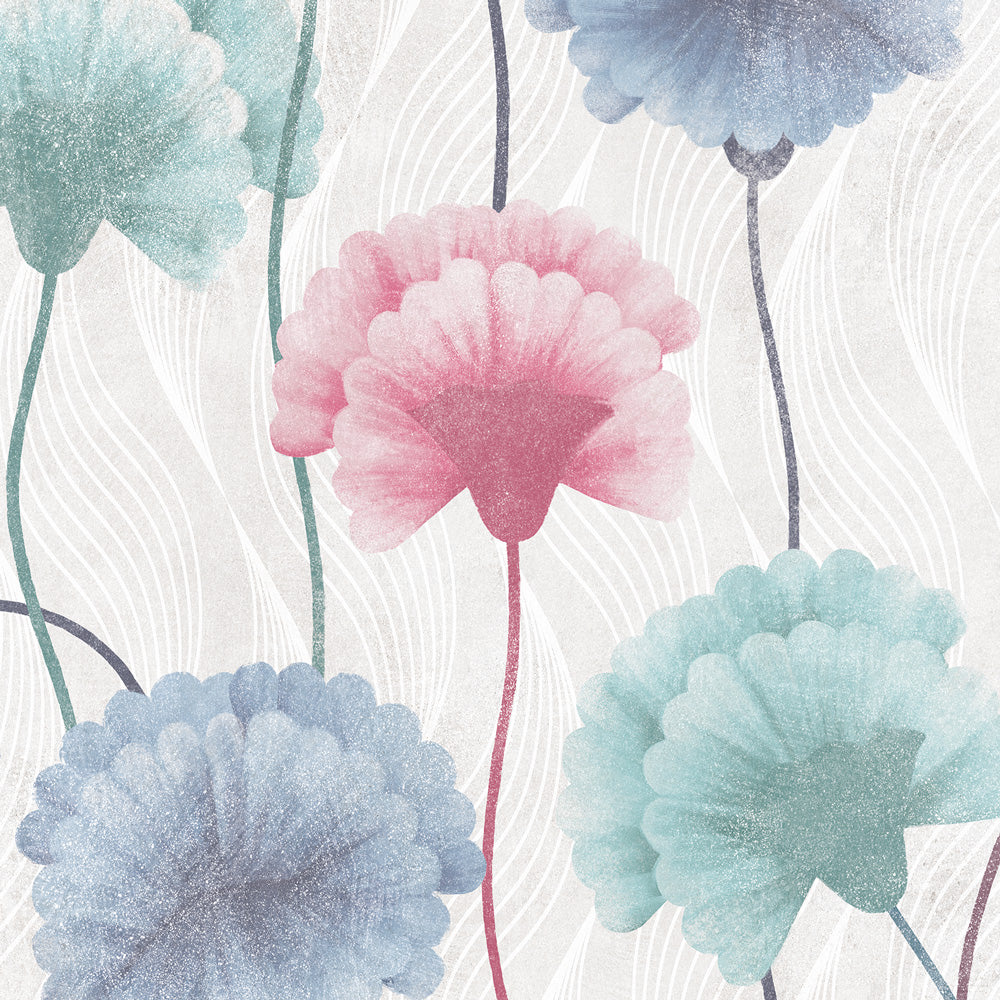 The " Floral Painting " Wall Mural will brighten up any room with delicate flowers in pastel shades. The cement-effect texture and brush stroke will make any room artistic without weighing it down, thanks to the delicate and trendy colors such as powder blue, pink and turquoise.