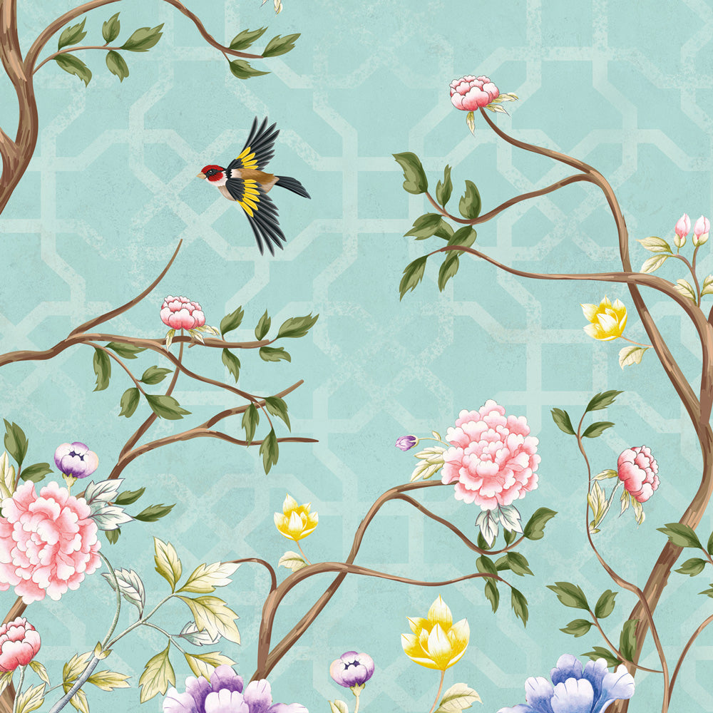Welcome to the sweetness of spring with the Wall Mural "Shabby Spring". This enchanting design from stile vintage shabby chic captures the essence of the most beloved season with climbing branches and birds dancing among the flowers. The turquoise background with geometric elements adds a touch of dynamism to the design. It fits perfectly into different rooms, such as bedrooms, living rooms or studies, where you want to create an atmosphere relaxing and romantic.