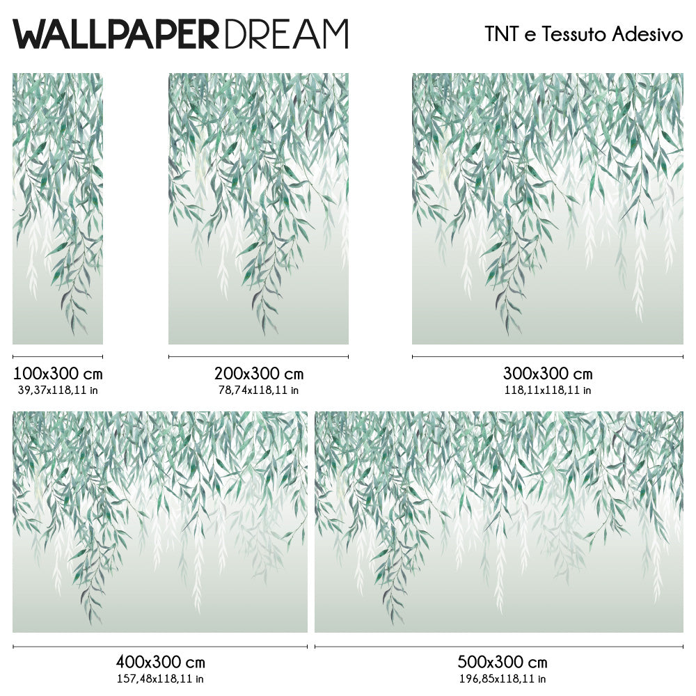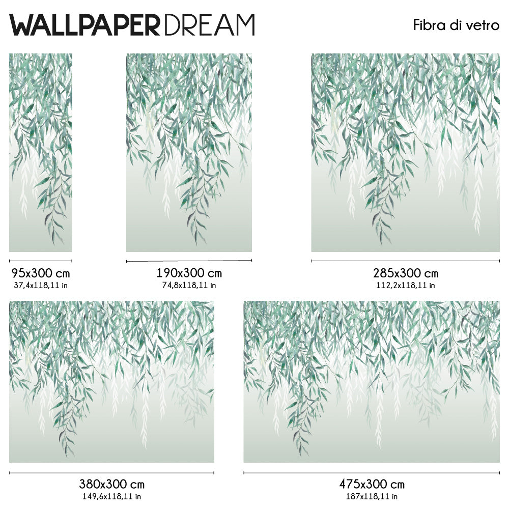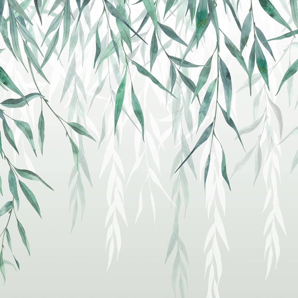 The Wall Mural "Willow Fronds" will bring new light and grace to your rooms with its delicate naturalistic pattern. The drooping leaves of the willow, executed in watercolor, are depicted with fluid brushstrokes and vivid colors leaning towards aquamarine, creating an effect of lightness and movement. Choose this design inspired by the magnificence and elegance of nature to enrich your rooms, from bedrooms to bathrooms, outdoors, living rooms, and hallways.