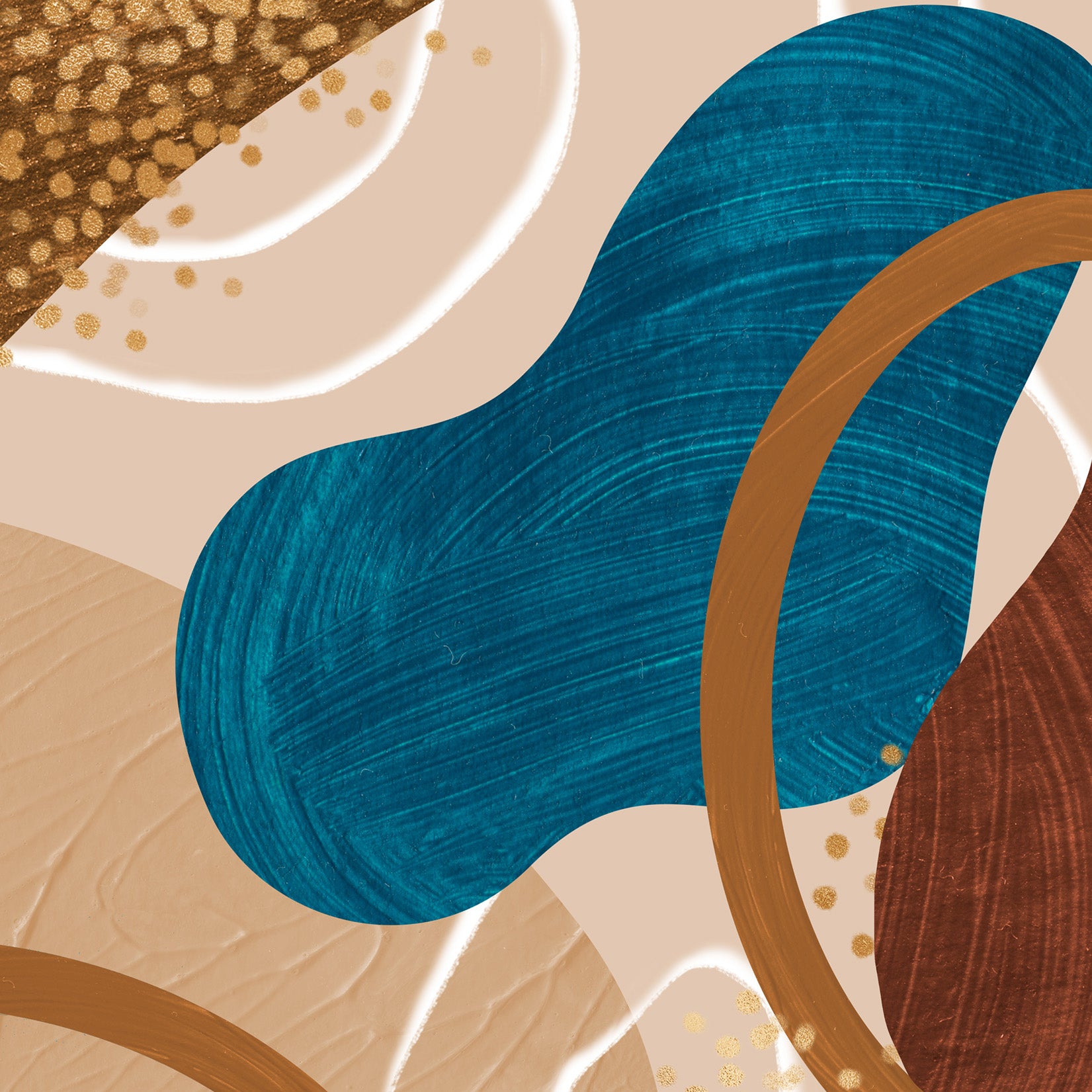 The artistic Wall Mural " Land and Sea " depicts, with abstract brushstrokes, a golden beach framed by turquoise pools of water. The sophisticated and natural colors will adapt to any environment and decor, giving a touch of class to your home. The painting effect texture helps to make this Wall Mural original and unique.