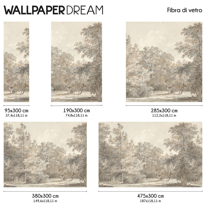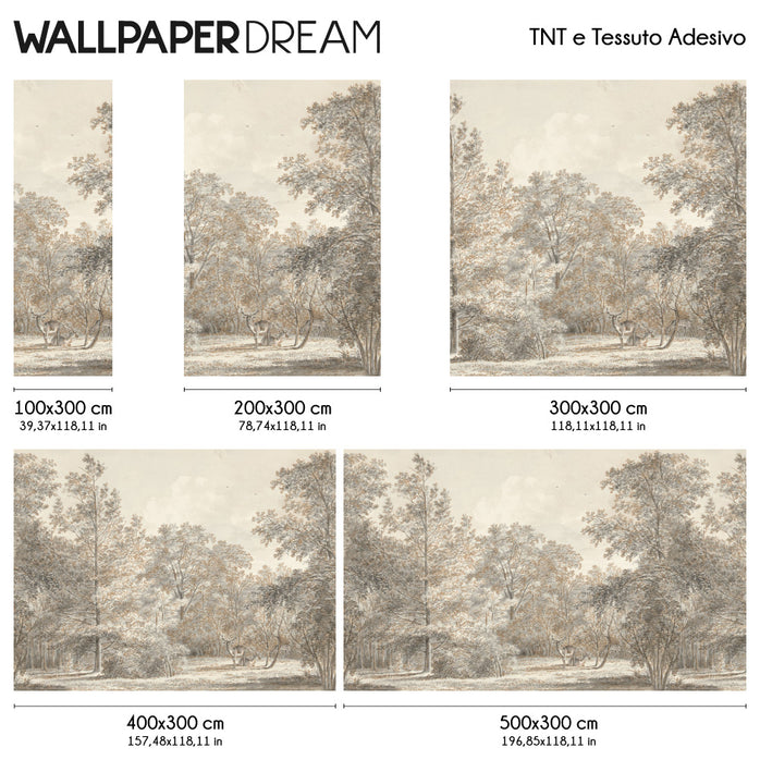 Look out onto an enchanted forest, where dense vegetation welcomes the presence of elegant and majestic deer. This exclusive design captures the mystical essence of the woods, thanks to a distinctive and delicate watercolor effect.