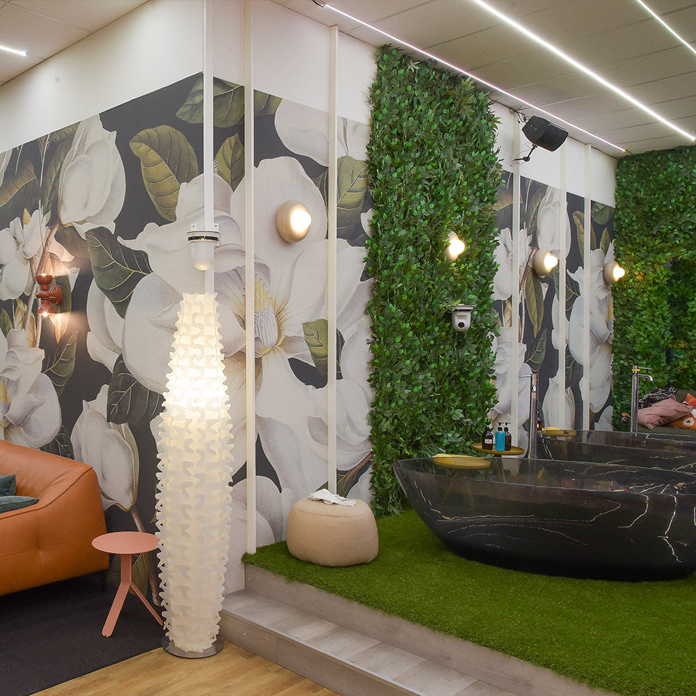 Cellulose-based support, PVC free, ecological with wall-effect finish. Fire resistant (B1 certified), washable and sound-absorbing, it can be used to set up commercial premises and structures in close contact with the public.