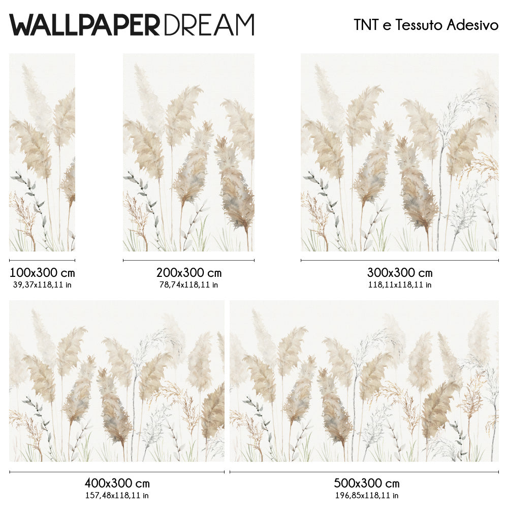 Live a unique experience with our artistic Wall Mural " Pampas grass ". The long stems of pampas grass done in watercolor and pencil drawings dance gently on the walls and the soft, sandy colors adapt to all environments and styles. Every detail of this Wall Mural is expertly crafted, with shades and tones that blend harmoniously to create a romantic atmosphere.