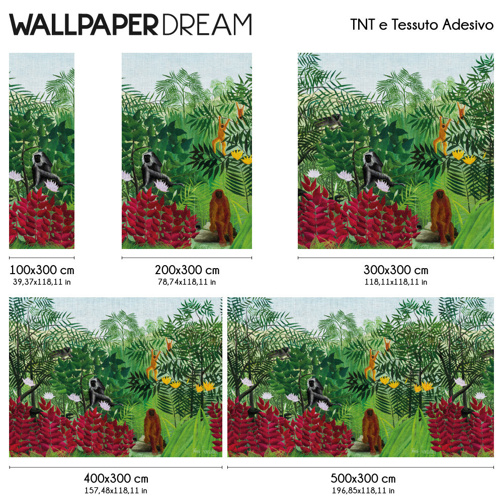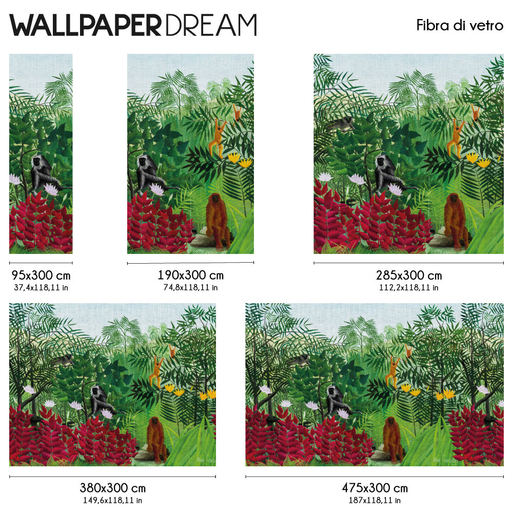 Live a unique decorating experience with the Wall Mural "Rousseau" by the artist of the same name. His touch of naïve painting and its savannah and jungle animals in tones red, green It is orange with delicious touches of yellow intense they will make your room an oasis of beauty. Let yourself be enchanted!