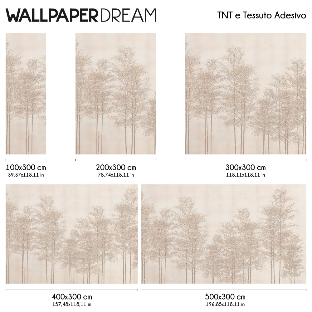 The " Bosco tenue " Wall Mural will envelop you in the delicate foliage of a blush-toned grove. The pink and cream-colored trees stand out against the whitish background embellished with a linen-effect texture . The atmosphere and soft colors will make your rooms magical and mysterious, from bedrooms to bathrooms and kitchens.