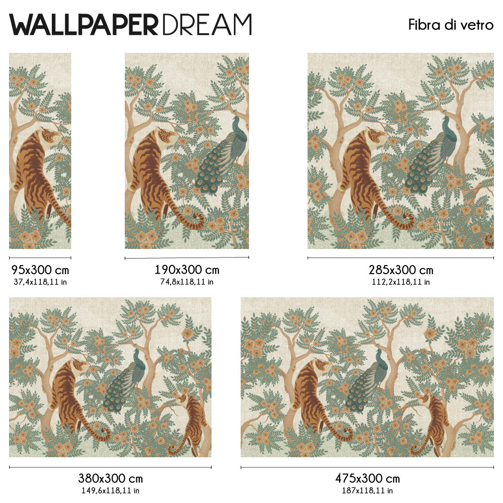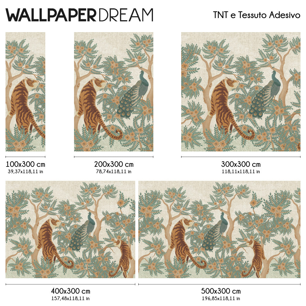"The Law of the Jungle" captures the essence of the wild, with its intricate detail and oriental beauty. The tigers, a symbol of strength and majesty, stand out with elegance, while encircling with desire the peacocks colourful. Exotic plants enrich the background, creating an atmosphere of mystery It is charm.