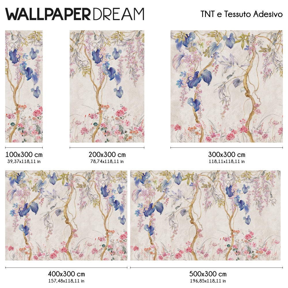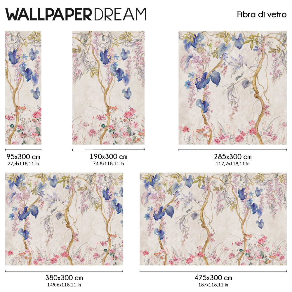 The Wall Mural "Wisteria Leaves" is an ode to nature and the delicacy of wisteria flowers. The climbing plants will intertwine on your walls with pastel and whimsical colors. The thousand flowers, elegantly executed in watercolor style, will enrich every room, from bedrooms to living rooms and bathrooms, without weighing it down. Choose this unique and 100% original WallpaperDream, enhanced by a wall effect texture to give a vintage aura to the design.