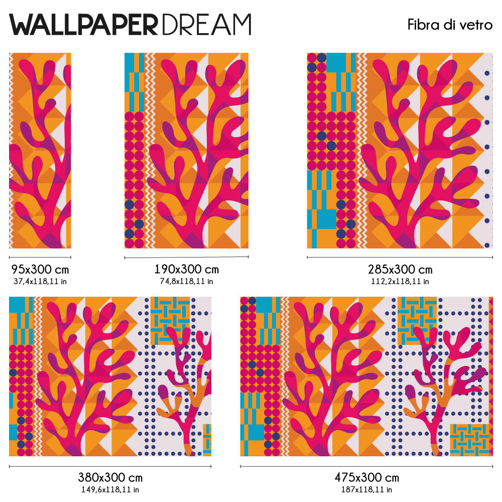 Scegli la fibra di vetro, ideale per bagni e persino box doccia, oppure la versione in TNT per rivestire tutti gli altri ambienti della casa. "Floreale pop" è la scelta perfetta per trasformare le tue pareti in un'opera d'arte unica e personalizzata. La sua versatilità ti permetterà di creare ambienti unici, dal bagno di un hotel di lusso alla tua zona benessere personale.