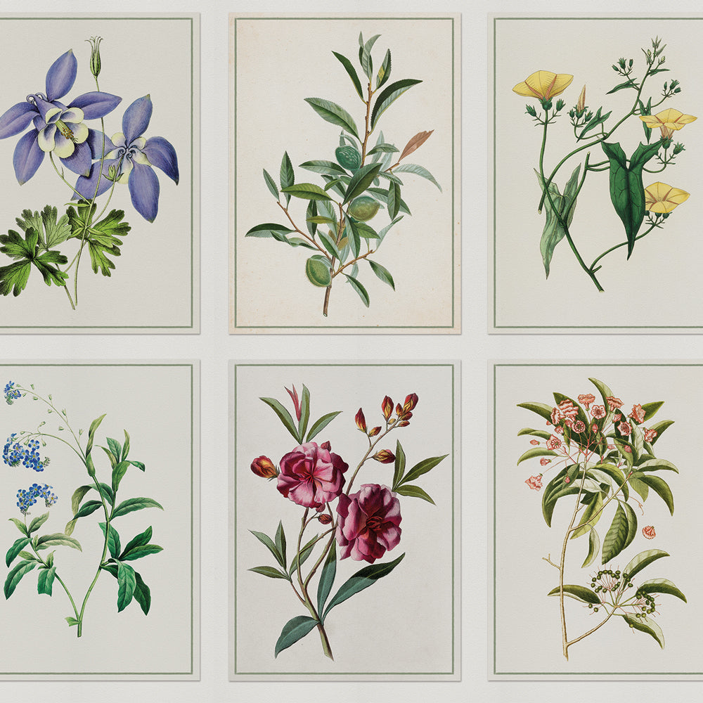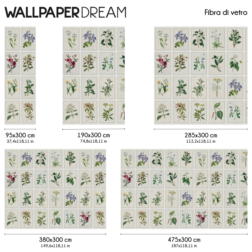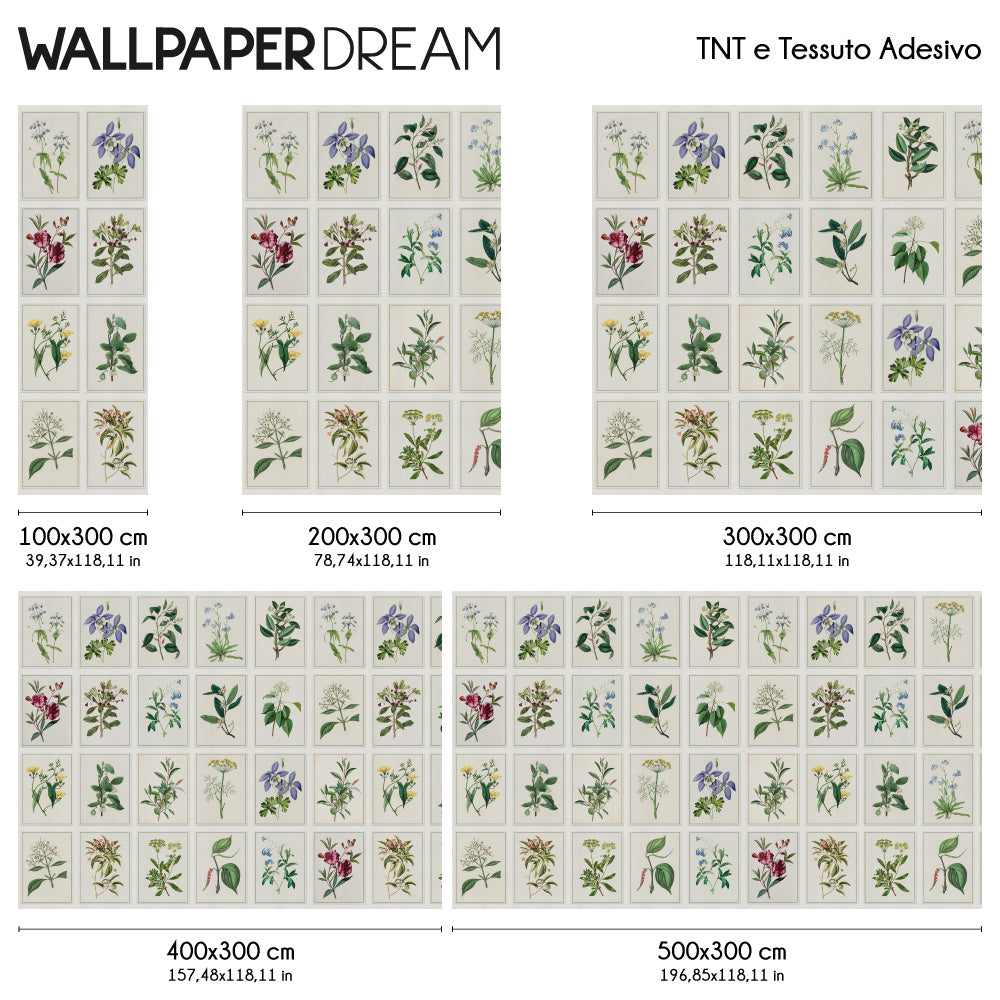 La carta da parati vintage "Tavole botaniche" di Wallpaperdream è una pinacoteca straordinaria di piante e fiori provenienti da tutto il mondo. Le illustrazioni botaniche, in stile realistico, sono magistralmente eseguite ad incisione acquarellata e una texture carta anticata rende la grafica ancora più preziosa e vintage.