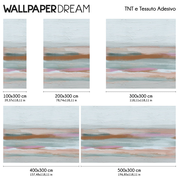 El Papel Pintado abstracto "Amanecer sobre el mar" vestirá tus paredes de elegancia y refinamiento. El diseño evoca, a través de pinceladas abstractas, un mar iluminado por los rayos del sol naciente, se adaptará a cualquier ambiente moderno. Déjate envolver por los delicados tonos del azul y del rosa, calentados por trazos de naranja y por texturas efecto yeso.