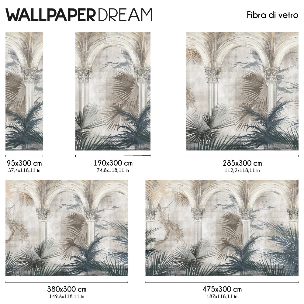 Este Papel Pintado recuerda elementos arquitectónicos antiguos y al mismo tiempo proyecta su habitación en un bosque inexplorado.