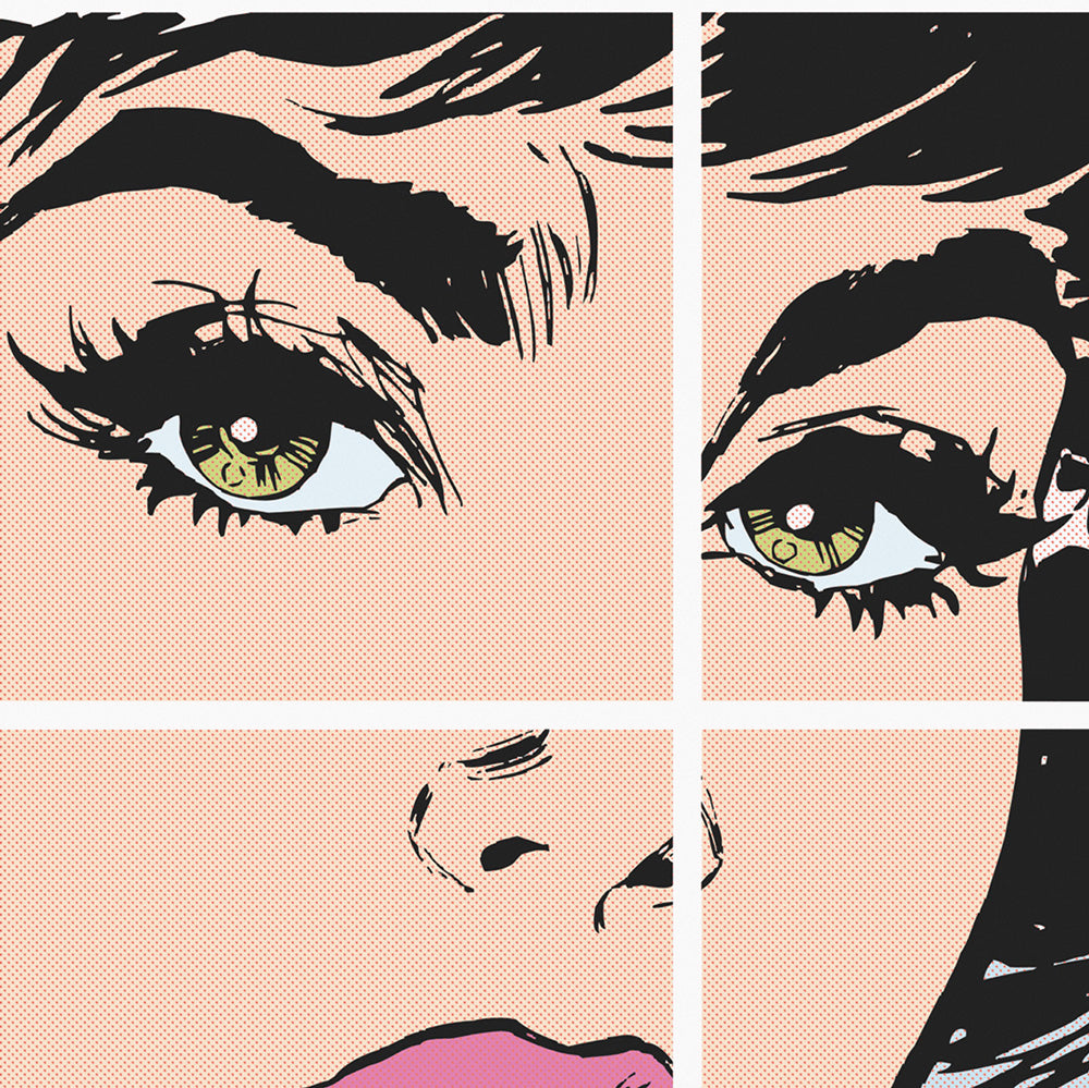 El Papel Pintado pop art " Love story " narra, en el lenguaje típico de los cómics de la primera mitad del siglo XX, historias de amor. Los personajes, representados en tinta y con texturas que recuerdan a los estampados vintage, harán únicos tus ambientes, desde dormitorios hasta salones, habitaciones y cocinas.