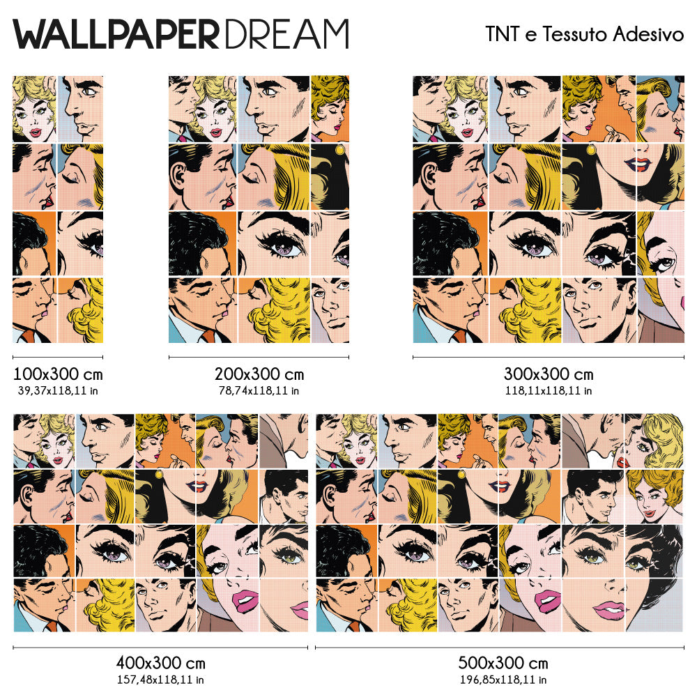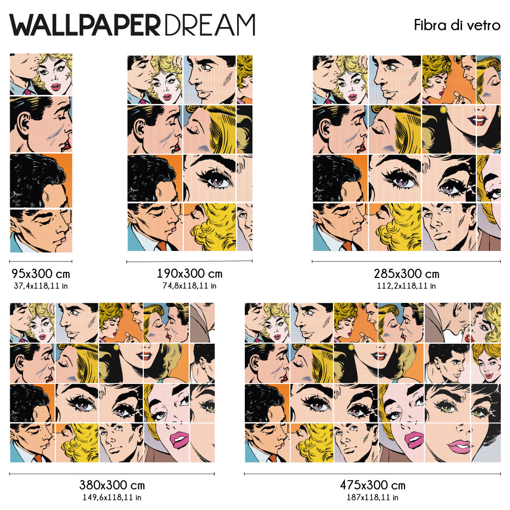 El estilo cómico de "Love story" le da un toque artístico y creativo a tu espacio y los materiales y el cuidado 100% italianos de WallpaperDream garantizan un rendimiento y una durabilidad excepcionales. La fibra de vidrio, utilizada para ambientes en estrecho contacto con el agua, combinada con la resina bicomponente se convertirá en un revestimiento 100% ignífugo e impermeable. El tnt realzará los gráficos antiguos con texturas particulares.