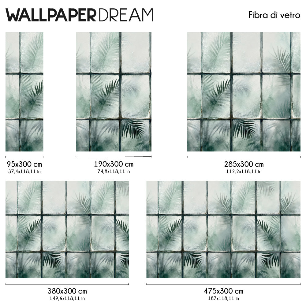 Este diseño exclusivo recrea la sensación de una exuberante selva tropical que se vislumbra a través de la estructura ligera de un invernadero o una vidriera. Una decoración mural que te transporta a otro lugar, creando una continuidad visual perfecta entre interior y exterior.