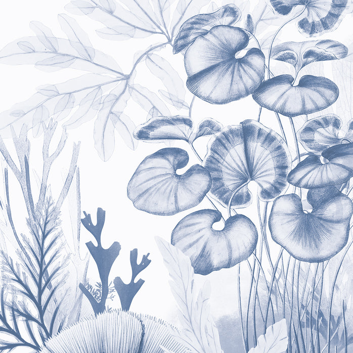 Trae la magia de las plantas marinas con el Papel Pintado artístico " Sea Garden ", exclusivo WallpaperDream . Las algas y los corales, representados aquí en estilo grabado, se extienden por las paredes en un fascinante tono índigo.
