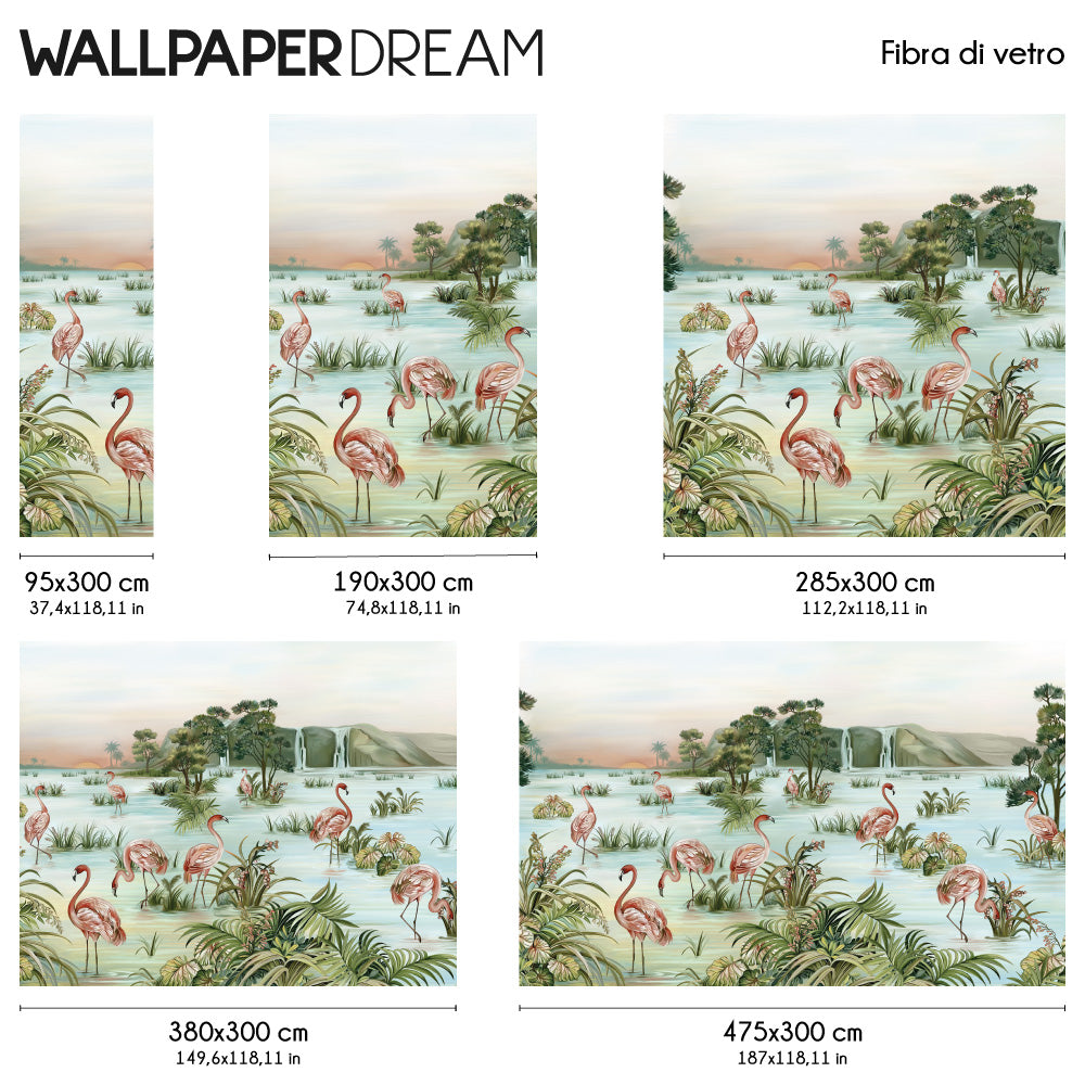 Sumérgete en un oasis de belleza prístina con el Papel Pintado artístico " Lago de los Flamencos ". Imagínate sumergirte en una selva exuberante e incontaminada, donde llameantes flamencos rosados se reflejan en un lago cristalino, rodeado de exuberante flora. Con el Papel Pintado "Flamingo Lake" transformarás tus paredes en un paraíso terrenal que evoca paz y armonía.