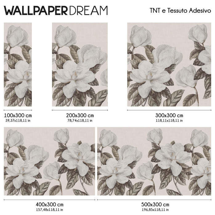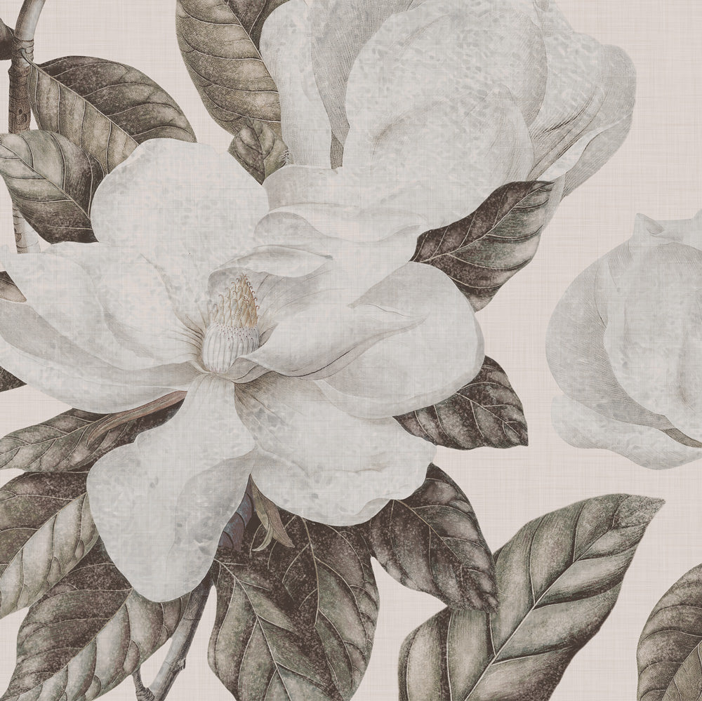 "Magnolia grandiflora" presenta una ampliación de flores de magnolia en toda su belleza, sobre un fondo efecto tela con tonos beige. Es ideal para añadir un toque de elegancia y sofisticación a cualquier ambiente. Se puede utilizar en diversos contextos, como salones, dormitorios o estudios, gracias a su estética moderna y su fondo neutro.