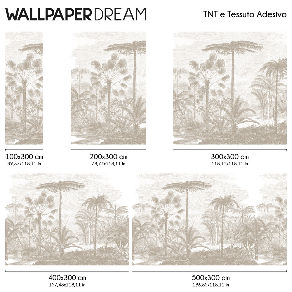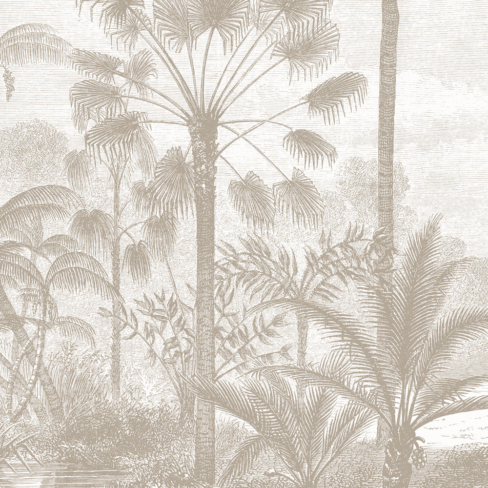 Las palmas y la vegetación del Papel Pintado "Oasis de paz" vestirán tus paredes con un estilo vintage elegante y refinado. El diseño exótico en estilo grabado calentará cada ambiente, desde los dormitorios hasta las salas de estar, cocinas, baños y duchas. Disponible en dos colores diferentes, blanco y negro y beige, para los ambientes más delicados.