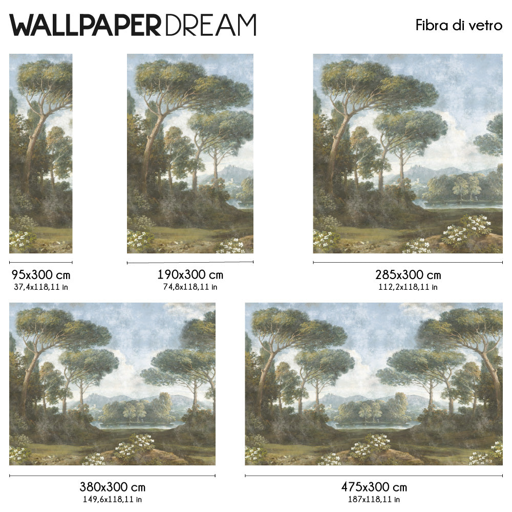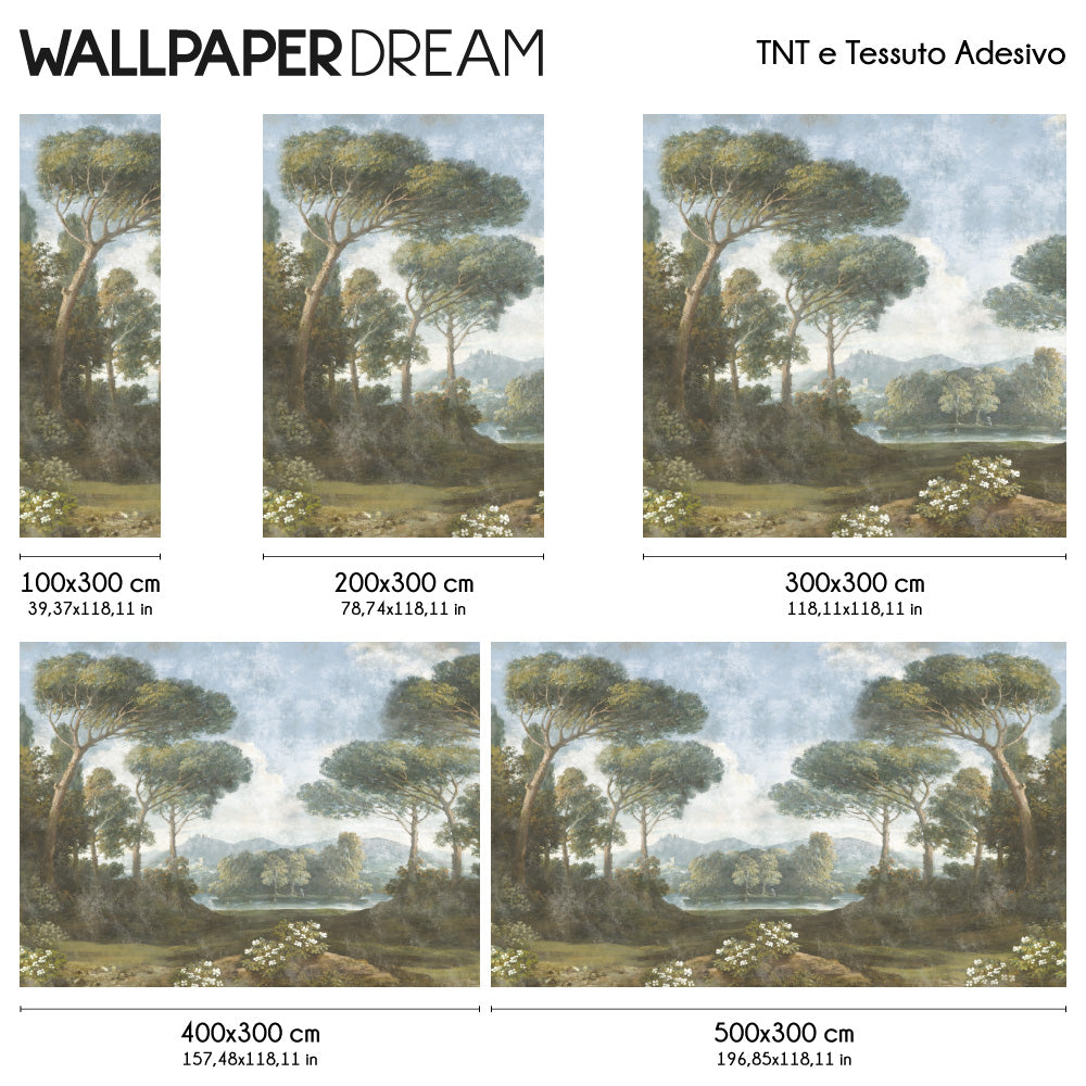 Questo design esclusivo cattura la ricchezza del paesaggio grazie a un inconfondibile e delicato effetto dipinto antico, che conferisce all'immagine una leggerezza pittorica unica. Il motivo, dal fascino retrò/vintage, ritrae alberi maestosi e una vegetazione rigogliosa, donando ai tuoi interni una dimensione di charme storico e profonda serenità. Trasforma il tuo ambiente in una vera oasi di tranquillità e benessere.