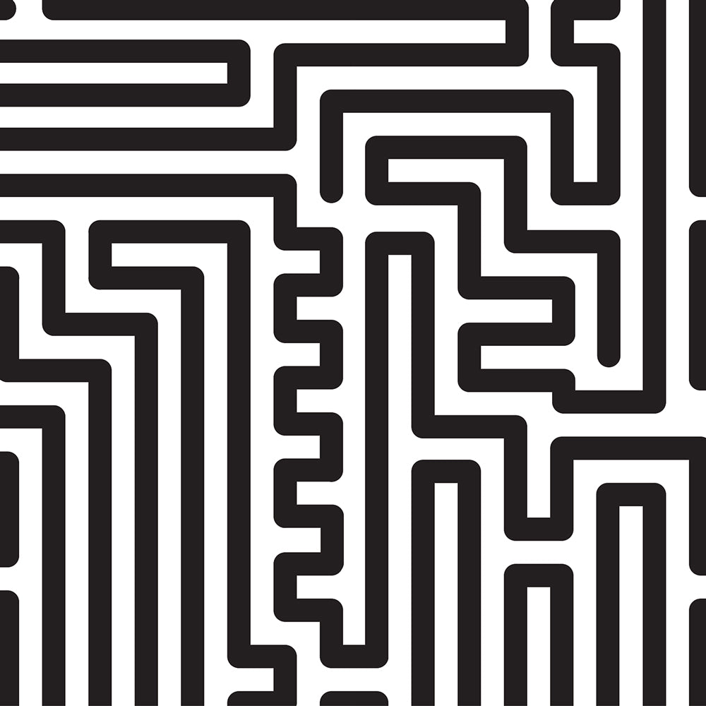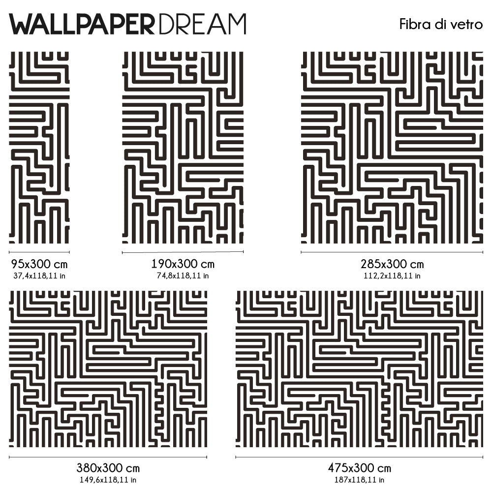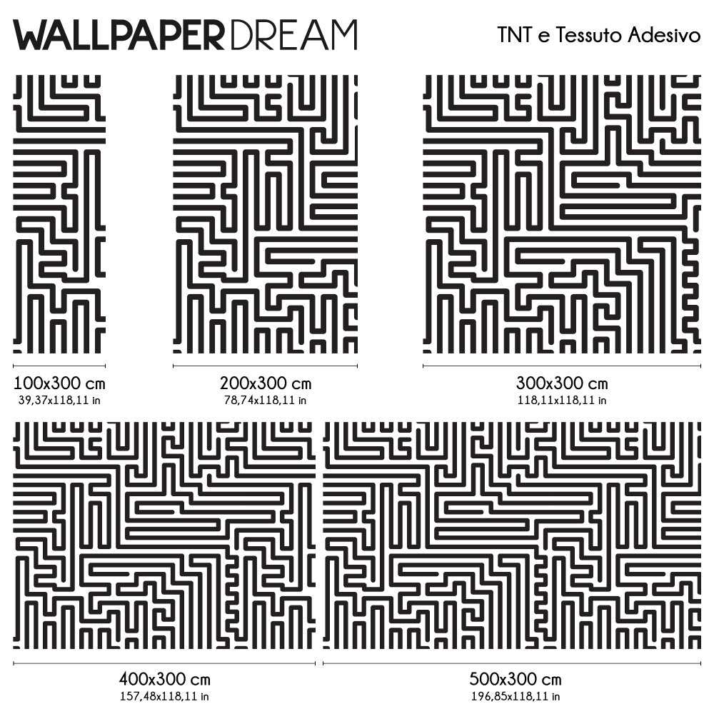 Vesti le pareti di stile con "Labirinto" una carta da parati bianca e nera dal disegno moderno, semplice eppure di grande impatto. Linee dritte si combinano tra loro creando un intrigo di corridoi e angoli, un labirinto chic che trasformerà ogni stanza in un'opera d'arte optical.