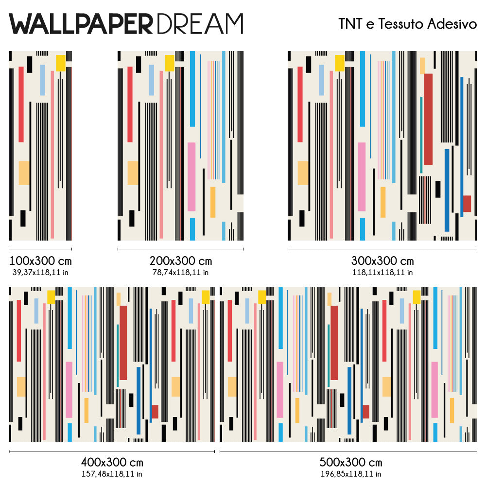 Rivoluziona i tuoi spazi e vesti le pareti di pura energia con la carta da parati "Luci intermittenti". Linee e rettangoli in colori sgargianti si stagliano sulle pereti creando un pattern unico nel suo genere. Rosso, giallo, celeste e rosa si intrecciano con il nero inchiostro per un design moderno e d'impatto.