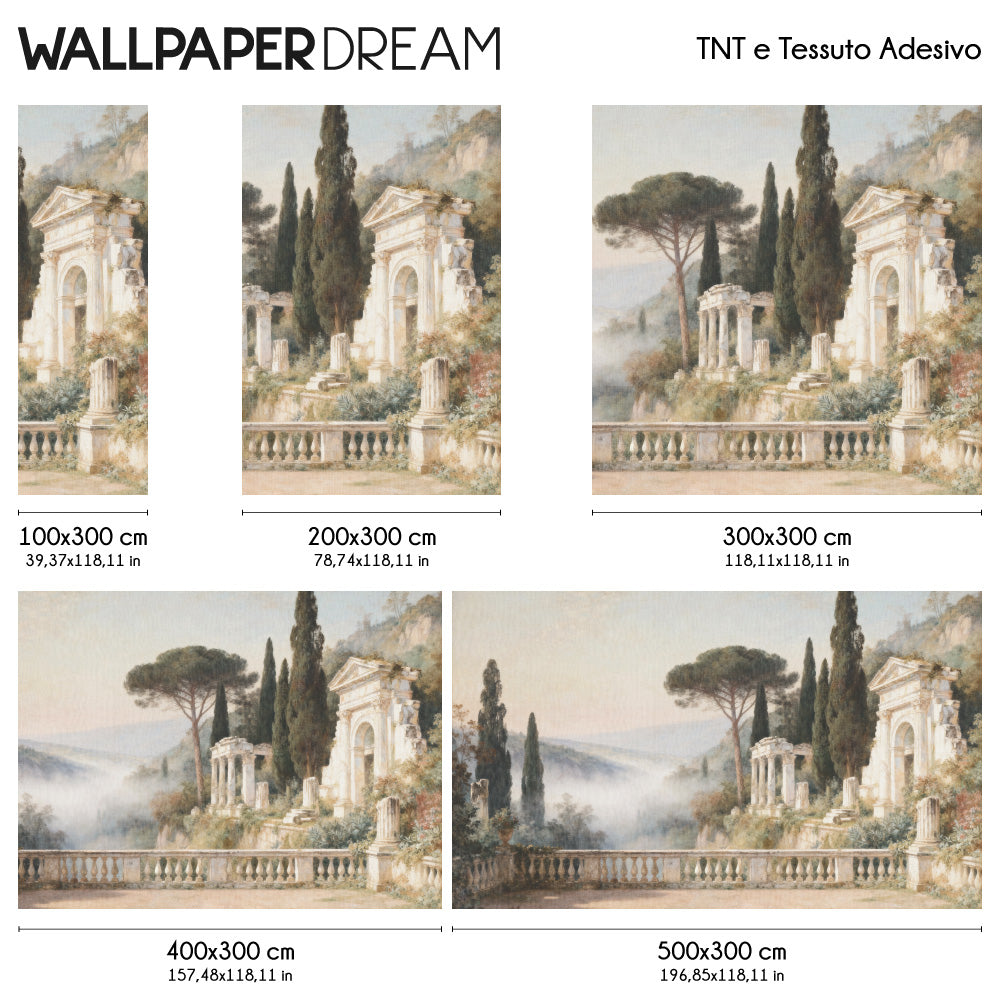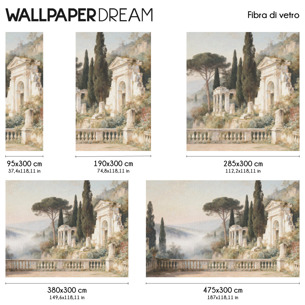 Regalati un'autentica fuga visiva con la nostra carta da parati vintage "Rovine Antiche". Questo design esclusivo non è un semplice rivestimento, ma una sofisticata illusione prospettica che invita a sognare a occhi aperti, evocando un mondo di architetture classiche e raffinati dettagli neoclassici.
