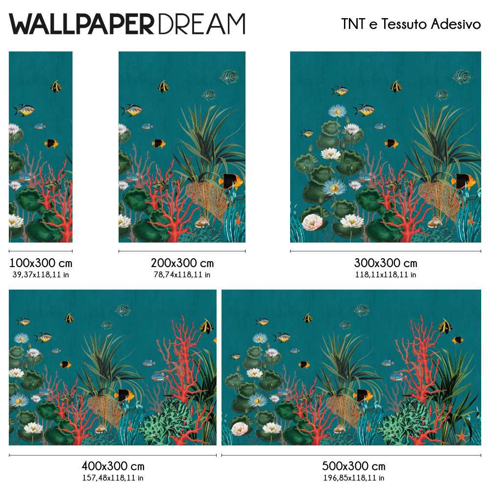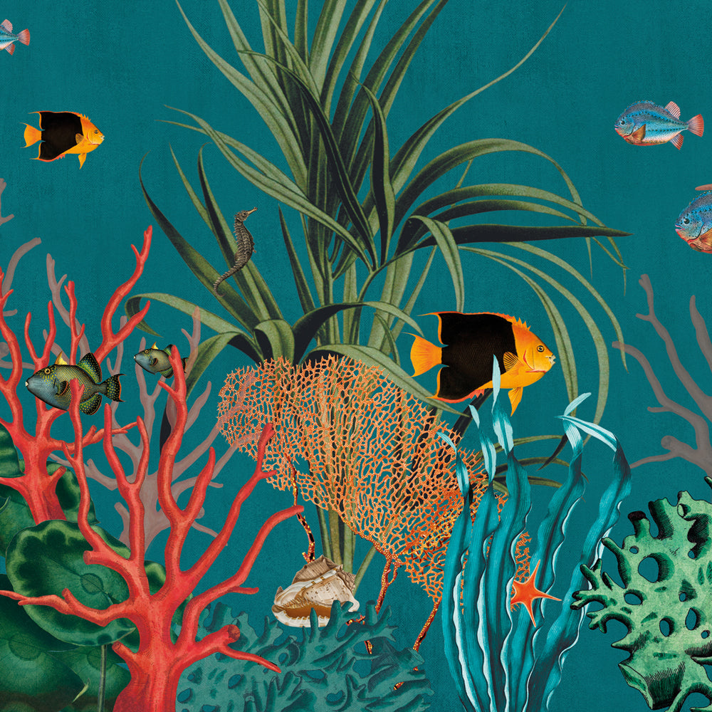 Coraux colorés et poissons exotiques vous transporteront dans un abîme enchanté avec le Papier Peint artistique "Bleu profond". Les animaux et plantes marins semblent danser sur les murs, vous invitant à vous immerger dans les eaux mystérieuses de l'océan. Le style de gravure augmente la préciosité et le charme du design et rendra vos pièces intrigantes.