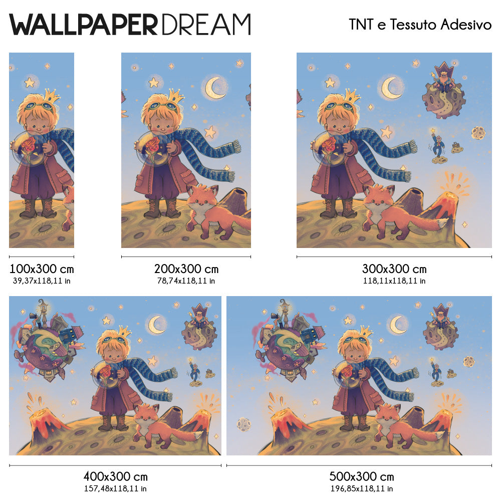 La Papier Peint artistique"Le monde du Petit Prince" dépeint certains des personnages les plus emblématiques de l'histoire de Petit Prince immergé dans le ciel étoilé. Le protagoniste regarde le spectateur accompagné du tendre renard et entouré des gens « extraterrestres » qui peuplent ses aventures. Disponible en bleu clair, celui-ci Papier Peint artistique est unique en son genre car il a été conçu spécifiquement pour WallpaperDream. Égayez la chambre de vos enfants et faites-les rêver avec cette œuvre, entièrement conçue et réalisée en Italie, qui possède toute la qualité et l'attention qui distinguent le Fabriqué en Italie.
