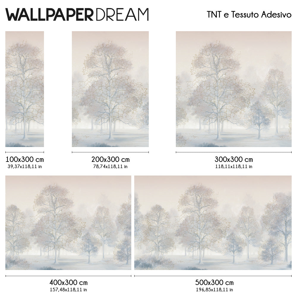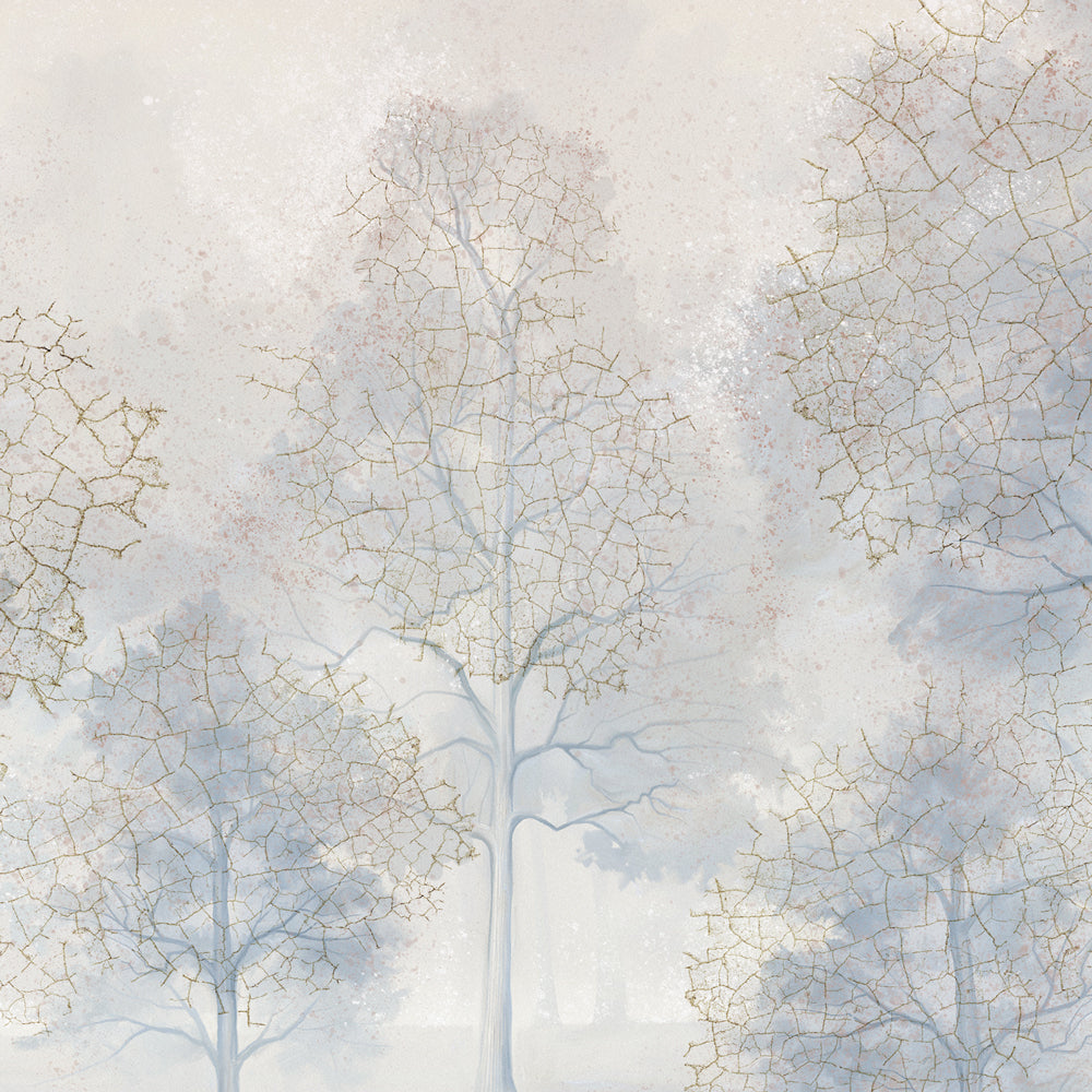 Revêtez vos murs d'élégance avec le Papier Peint pastel "Aube dans la Forêt". Le dessin raffiné capture l'essence et la magie d'une forêt aux teintes de poudre et de rose ancien, avec des marbrures dorées pour embellir les cimes des arbres.