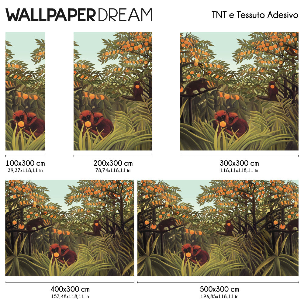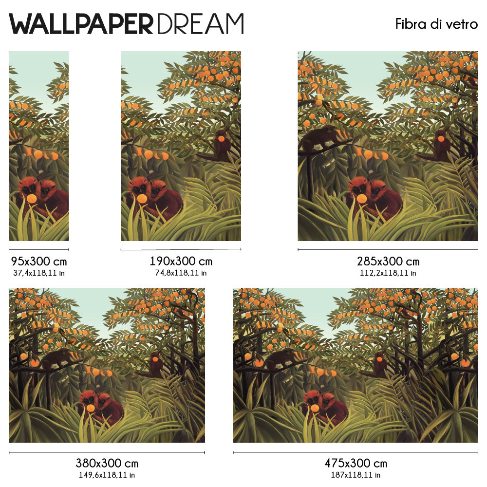Choisissez une œuvre d'art intemporelle avec le Papier Peint " Singes dans le verger ", célèbre chef-d'œuvre de l' artiste Naif Rousseau. La peinture pâteuse et le design non conventionnel rendent ce papier accrocheur et raffiné. Les mille nuances de vert, le sujet tropical, les singes et les accents de fruits oranges réchaufferont n'importe quel environnement, des chambres aux salles de bains.