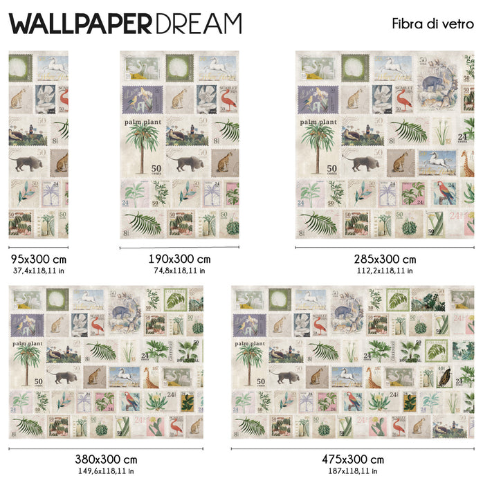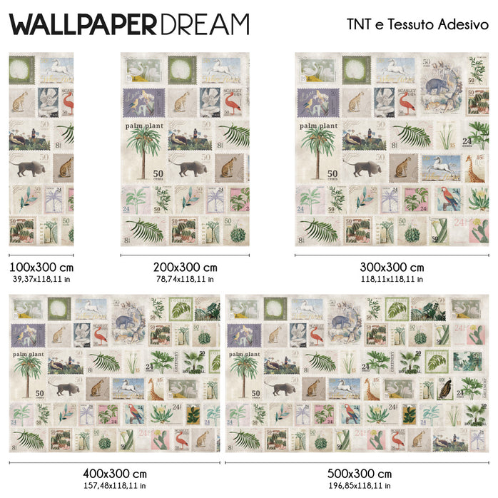 Partez pour une aventure visuelle sans quitter votre maison avec le Papier Peint "Francobolli". Ce design exclusif célèbre le charme nostalgique de la philatélie à travers une collection raffinée de timbres vintage, chacun un petit chef-d'œuvre dédié à la nature et aux tropiques.