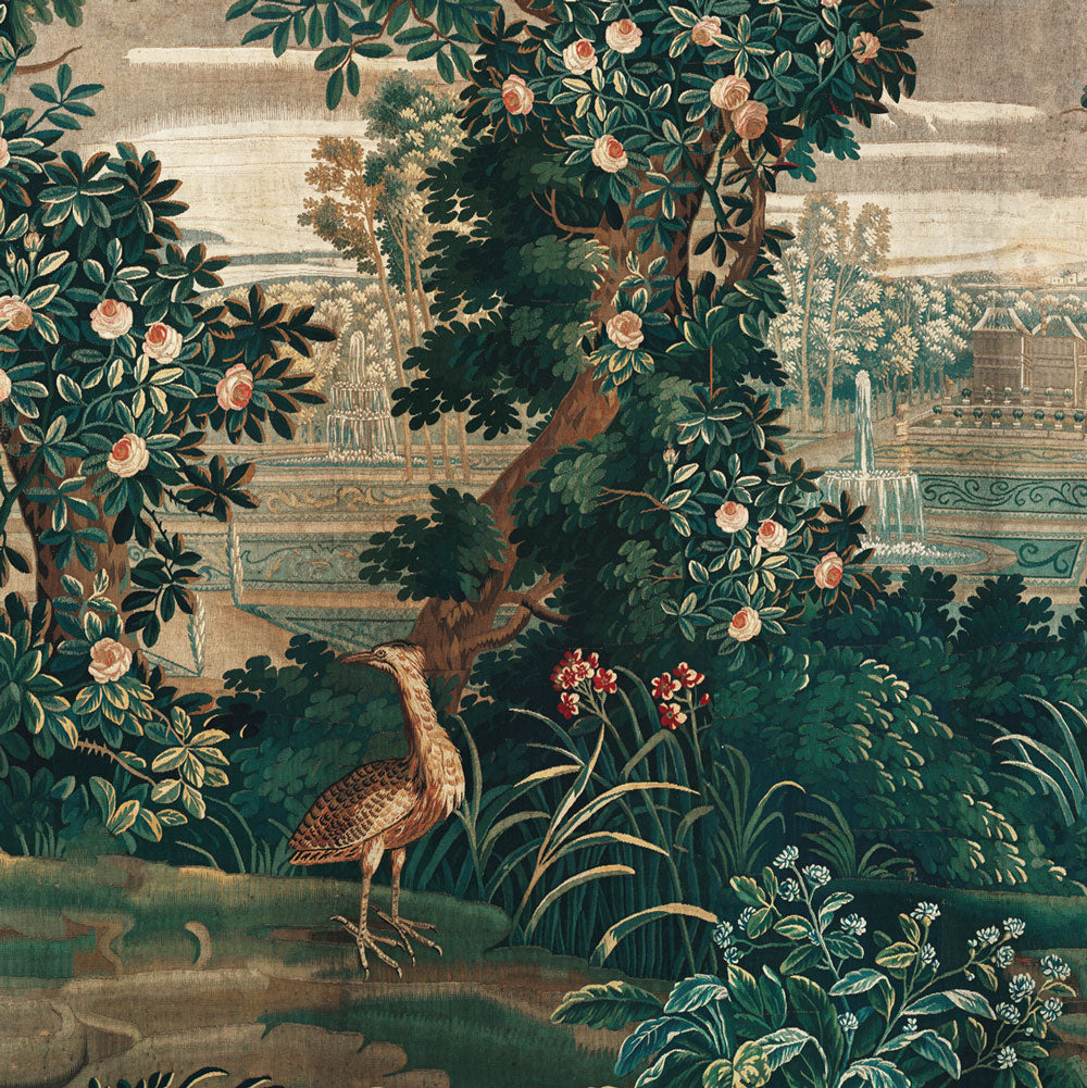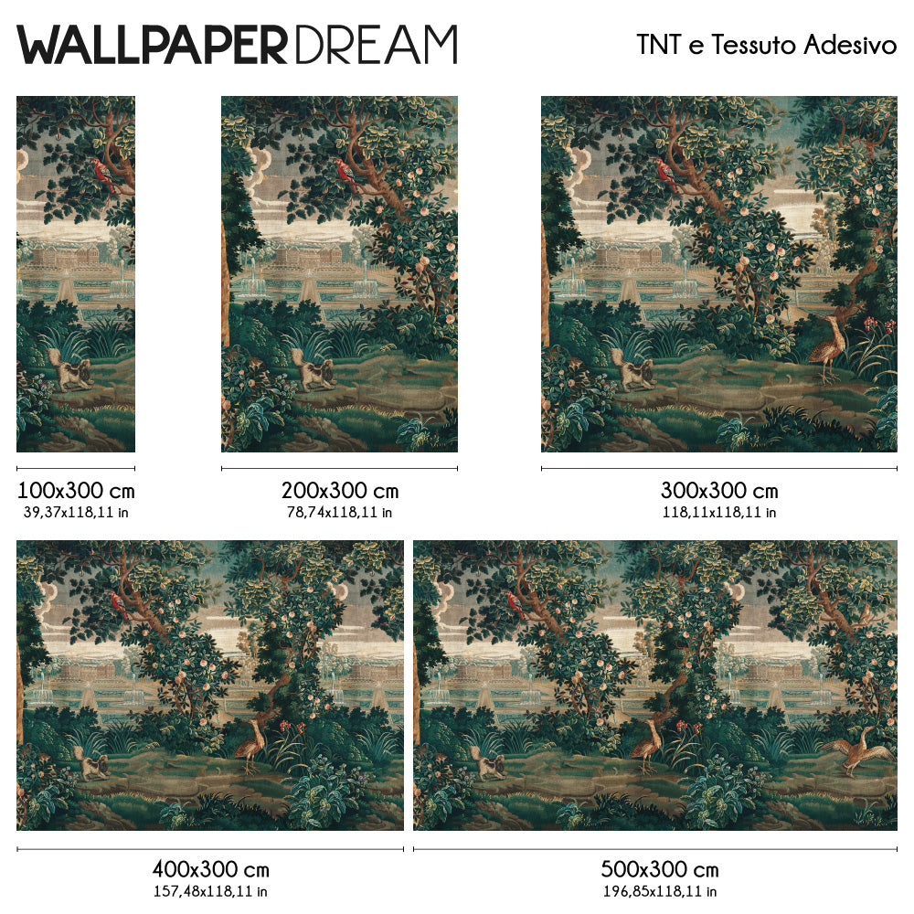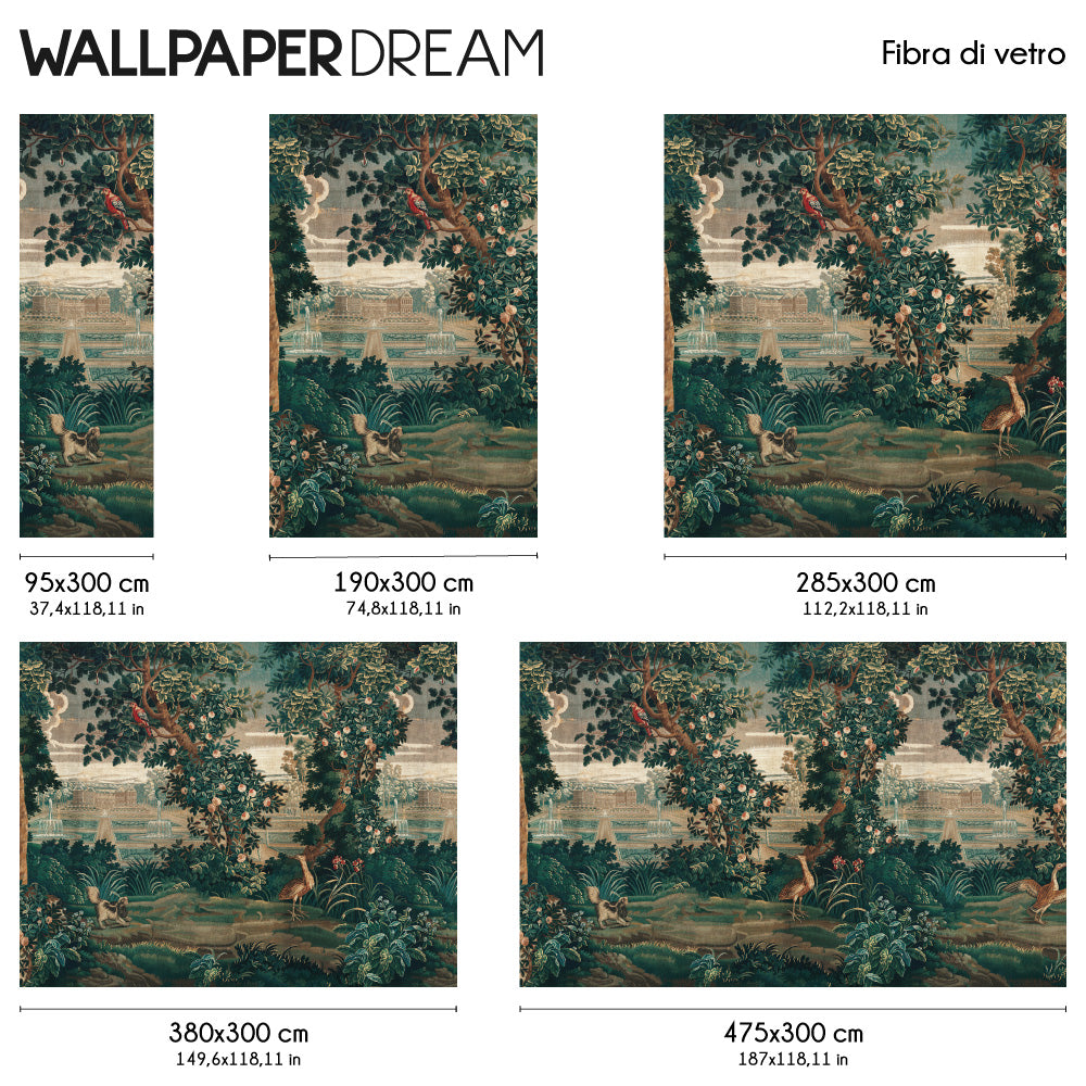 Lasciati sedurre da un'opera d'arte senza tempo: la carta da parati "Arazzo regale". Tratto da un antico arazzo, questo disegno trasformerà le tue stanze in ambienti da sogno che si affacciano sul passato. Il soggetto bucolico, popolato da uccelli e un cagnolino, incanterà ogni ospite, lasciando vagare lo sguardo verso l'infinito. Querce, fichi e rose fanno capolino tra gli alberi, un'inno alla macchia mediterranea e all'eleganza che si mescola all'arte decorativa inglese di fine ottocento.