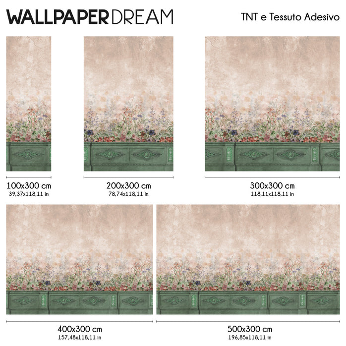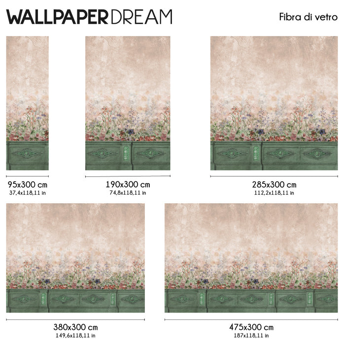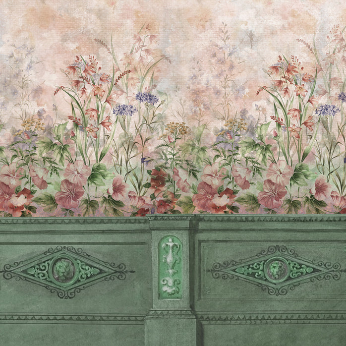 Questo design esclusivo è molto più di un rivestimento: è un raffinato trompe l'oeil architettonico. La grafica riproduce con boiserie antiche e fiori dipinti, donando alla stanza la struttura e l'eleganza delle dimore storiche e l'eleganza della natura.