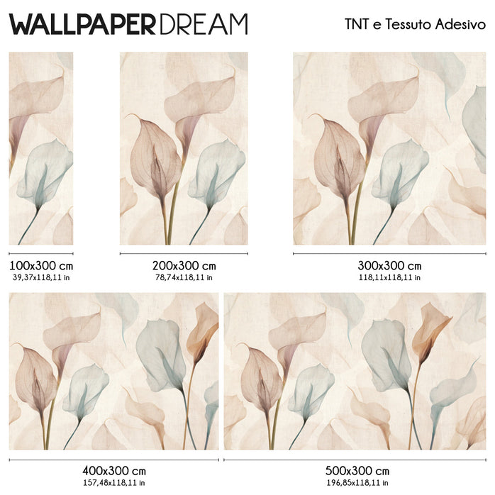 Lasciati sedurre dalla sublime bellezza di "Calle Danzanti". Questa carta da parati cattura la leggiadra essenza delle calle, raffigurate in delicate tonalità beige che fluttuano su un sottofondo suggestivo di petali semitrasparenti. Un design ideale per infondere in ogni stanza un'eleganza contemporanea, mantenendo vivo il fascino delle illustrazioni floreali classiche.