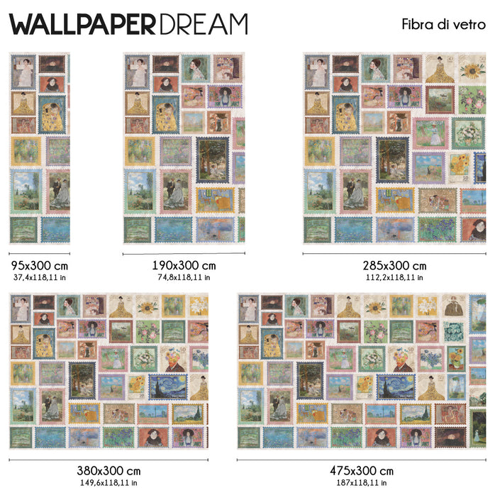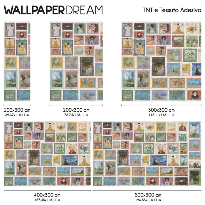 Una Galleria d’Arte in Miniatura Da Van Gogh a Rousseau, passando per le geometrie dorate di Klimt e le luci vibranti di Monet: ogni francobollo è un frammento di storia dell'arte che decora i tuoi spazi con un’eleganza colta e originale. Questa composizione non è solo un rivestimento, ma un racconto visivo che infonde curiosità, cultura e un pizzico di esotismo raffinato in ogni stanza.