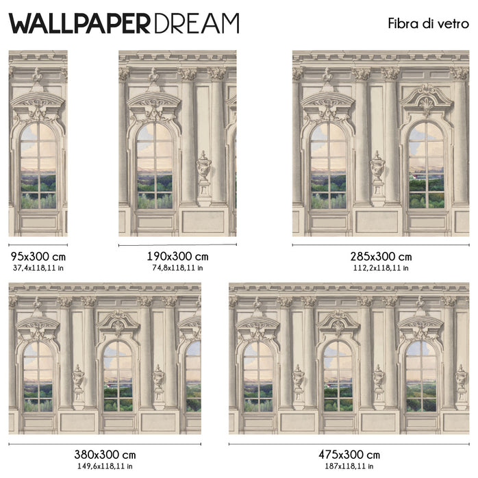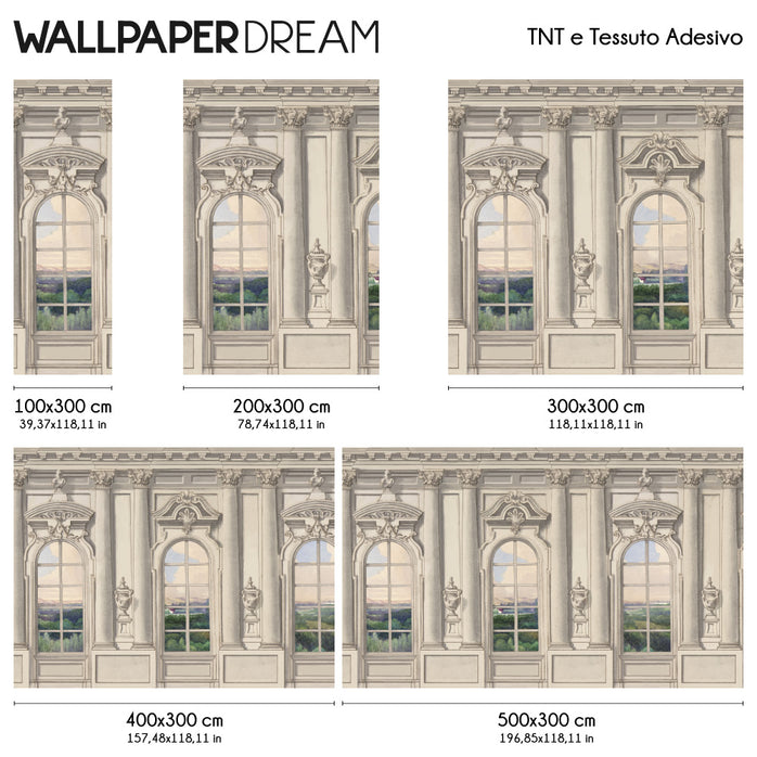 La carta da parati vintage 'Cortile antico' ti farà sognare ad occhi aperti paesaggi sconfinati attraverso finestre ad arco e architetture antiche. Capitelli corinzi e busti incorniciano gli affacci su un meraviglioso eden campestre, ricco di vegetazione e alberi. Il contrasto tra il bianco delle architetture e il verde degli elementi naturali conquisteranno i tuoi ospiti e creeranno un'atmosfera magica in ogni ambiente.