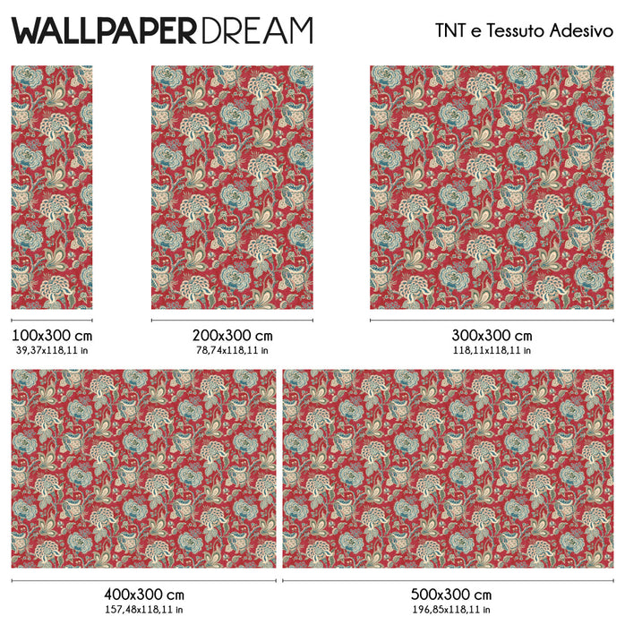 La carta da parati 'Fantasia d'Oriente' è un'ode alla cultura e alla tradizione artistica orientale, un'esplosione di eleganza e simbolismo. Rami e fiori, disegnati con un tratto vintage e sofisticato, si intrecciano su un fondo anticato, creando un'atmosfera ricca di fascino e mistero. Eleganti uccellini volteggiano tra le foglie, portando un tocco di leggerezza e grazia. Il fondo rosso mattone, simbolo di ricchezza e prosperità in Oriente, rende questa carta da parati unica e di buon auspicio.