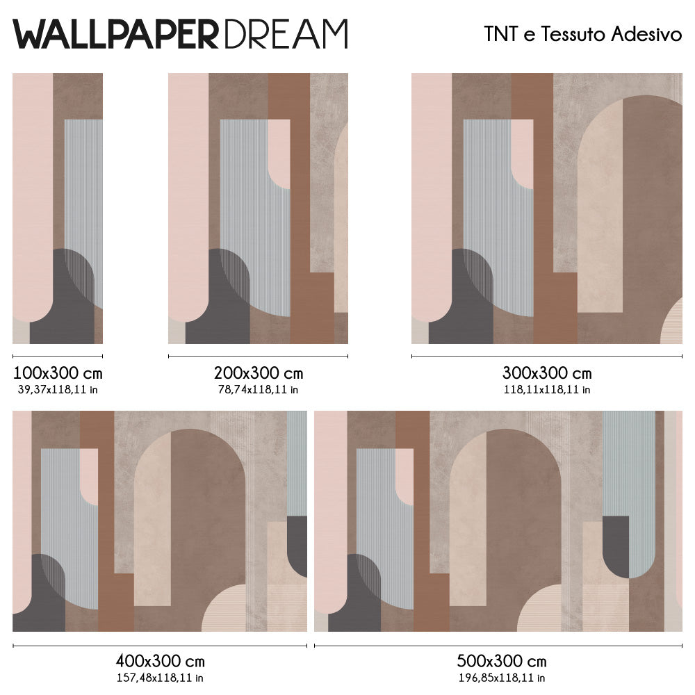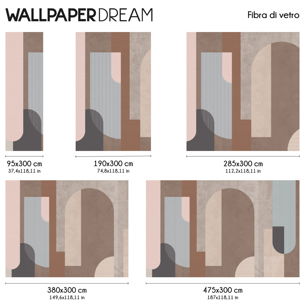 La carta da parati "Geometrie chic" vestirà di stile ed eleganza le tue pareti con colori caldi e le linee geometriche essenziali e pure. Le forme ad arco si intrecciano con pattern e texture creando una grafica unica ed originale, l'effetto cemento impreziosisce ulteriormente questo disegno originale Wallapepedream.