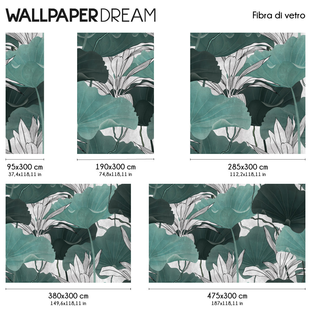 La carta da parati "Giardino di loto" è un omaggio all'eleganza naturale alla pianta orientale; le foglie, dipinte con uno stile moderno, si distinguono per le loro linee fluide e audaci. Ogni dettaglio è stato catturato con maestria, evidenziando la grazia del soggetto.