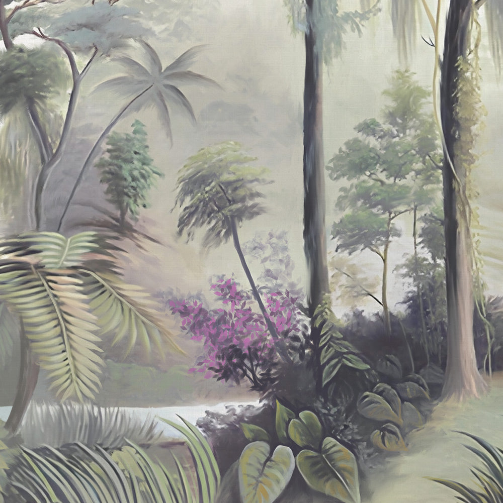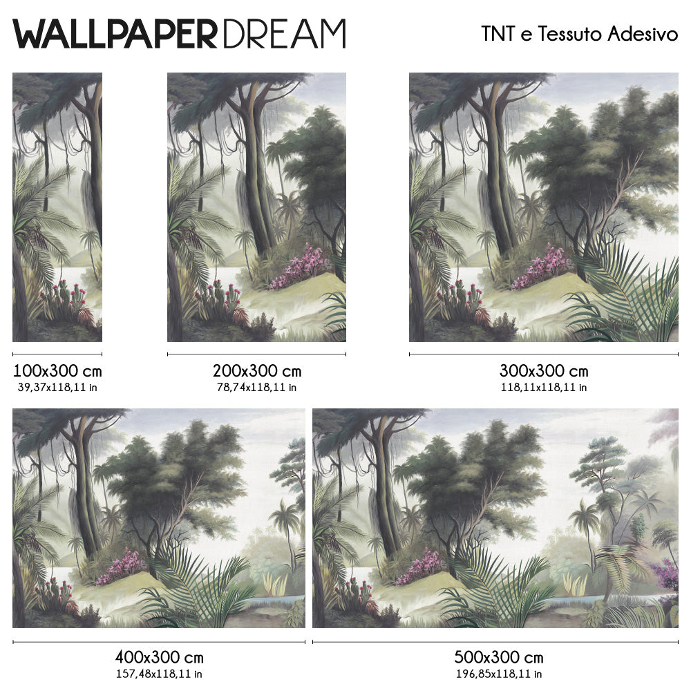 Vivi l'avventura con la carta da parati "Paesaggio tropicale". Una foresta tropicale si estenderà davanti ai tuoi occhi, con piante, alberi e liane tipici delle aree pluviali. I colori delicati la rendono ideale per qualsiasi ambiente a cui si desidera dare un tocco di personalità, dalle camere da letto ai soggiorni, bagni e ed esterni.