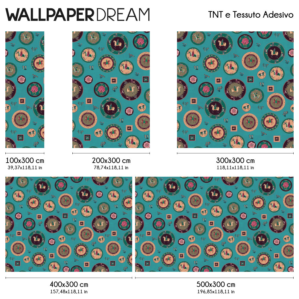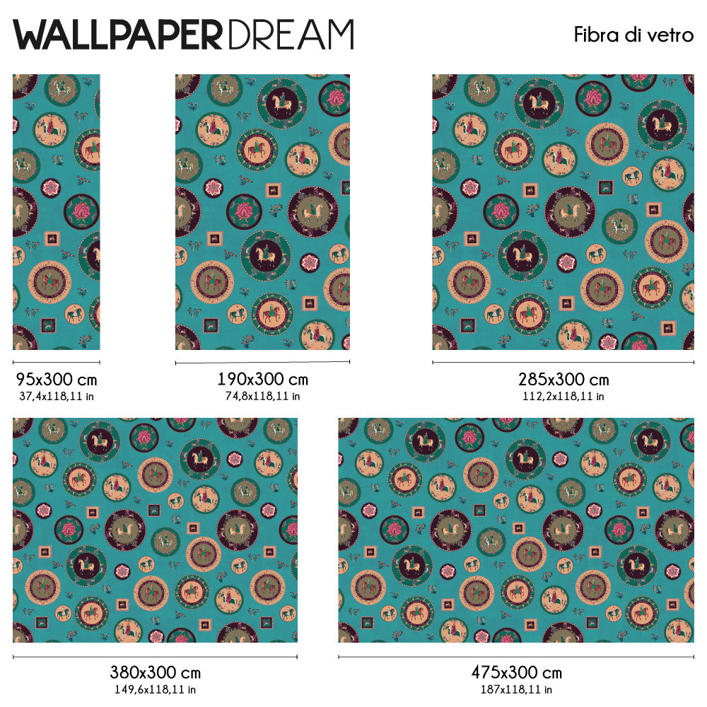 La carta da parati vintage "Piatti Artistici" di Wallpaperdream è una vera e propria opera d'arte per le tue pareti. I piatti antichi con raffigurazioni dal sapore orientale sembrano usciti direttamente da un'epoca lontana e i colori sofisticati la rendono unica e indimenticabile. Il fondo verde pavone brillante si sposa perfettamente con le decorazioni all'interno del servizio di piatti, combinandosi con colori a contrasto come ocra, rosso bordeaux e verde smeraldo.
